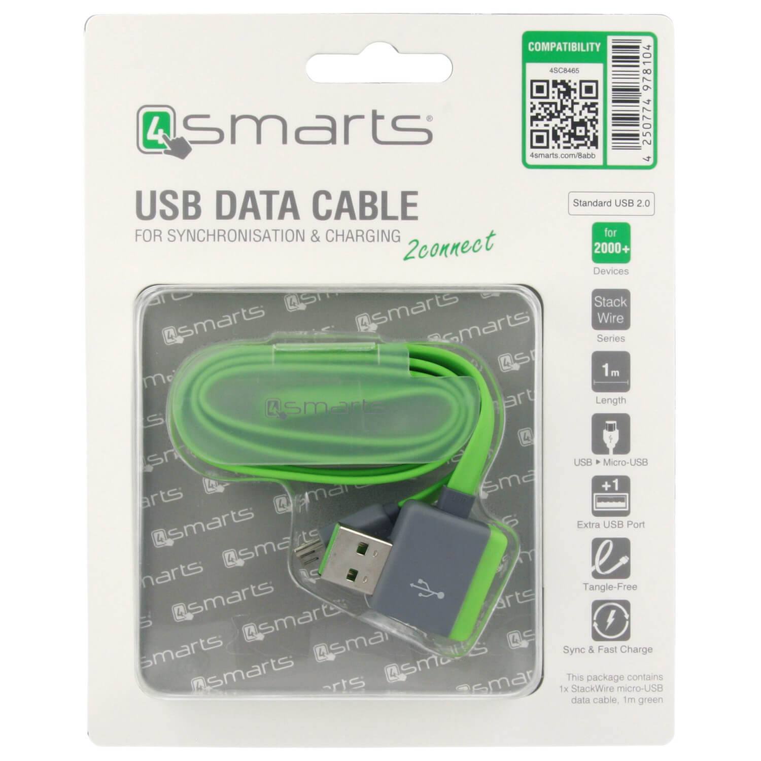 4smarts StackWire Micro-USB Data Cable 1m - компактен microUSB кабел с USB изход за мобилни устройства с microUSB вход (сив-зелен)