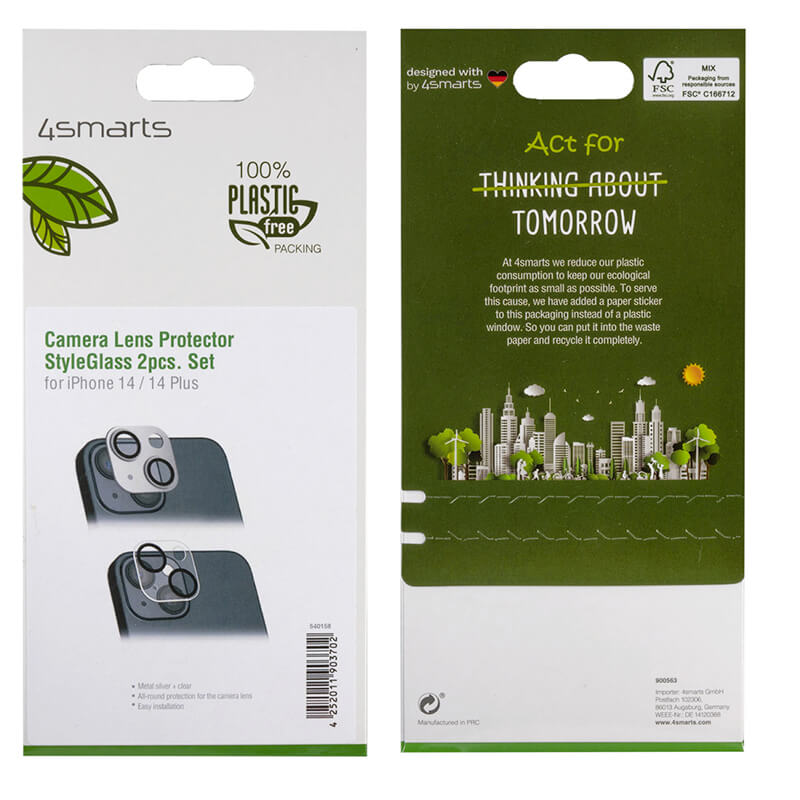 4smarts StyleGlass Camera Lens Protector - 2 броя предпазни плочки за камерата на iPhone 14, iPhone 14 Plus (сребрист и прозрачен)