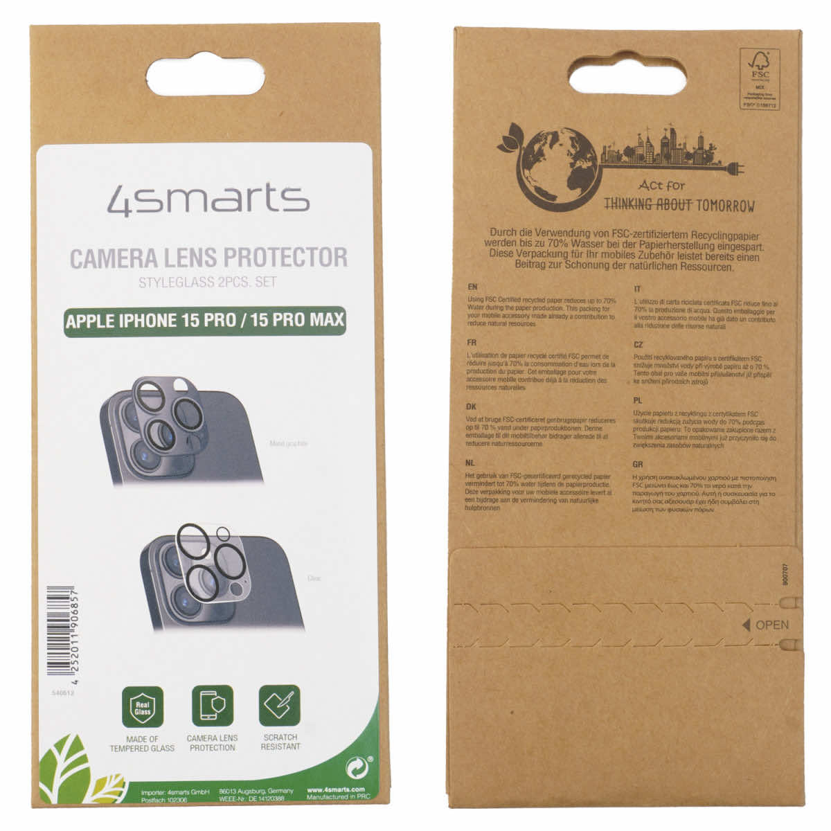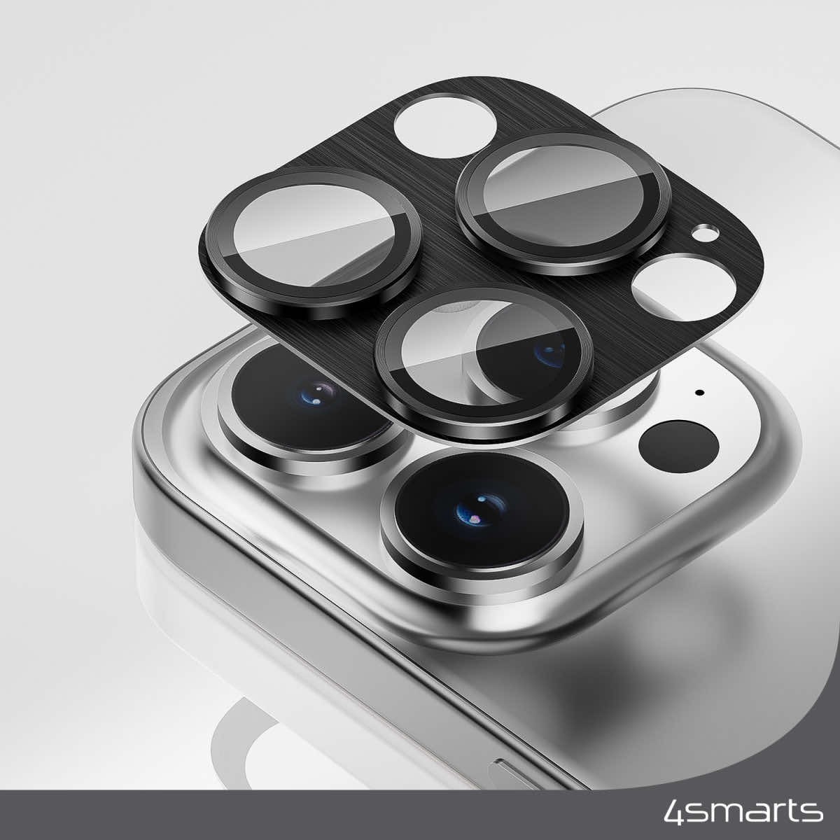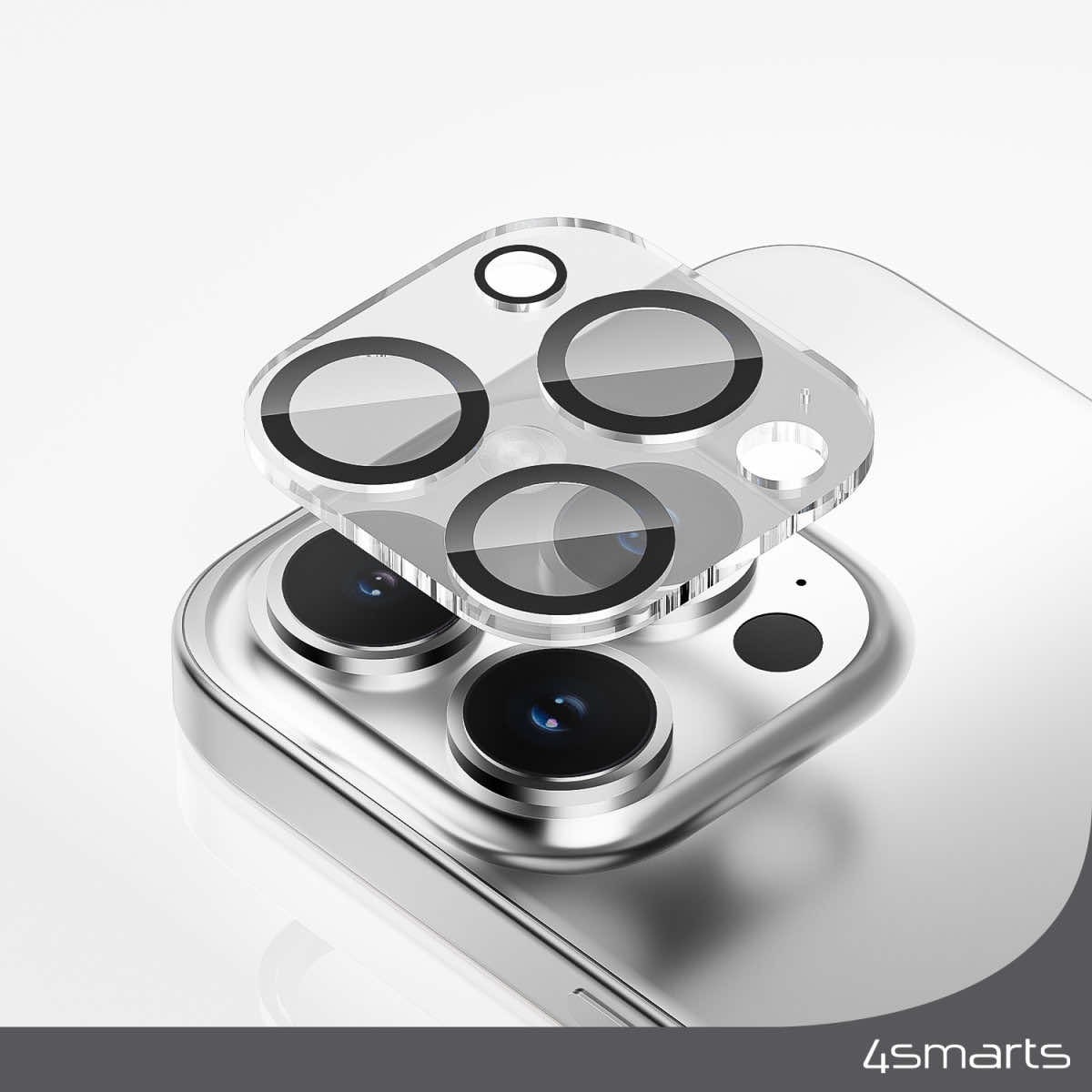4smarts StyleGlass Camera Lens Protector - 2 броя предпазни плочки за камерата на iPhone 15 Pro, iPhone 15 Pro Max (тъмносив и прозрачен)