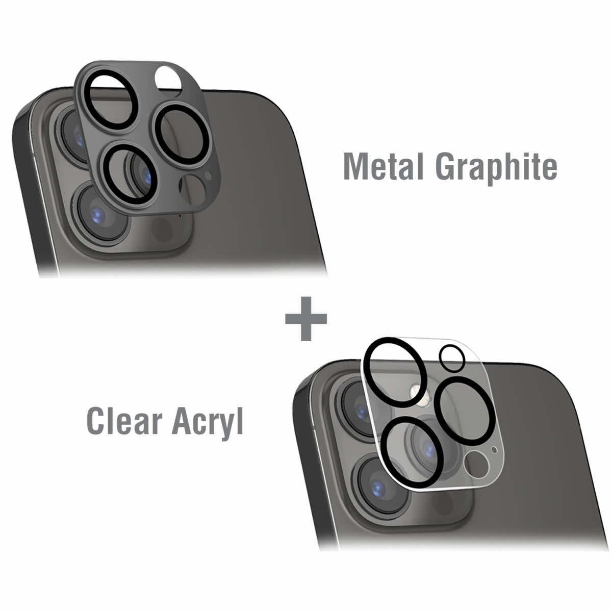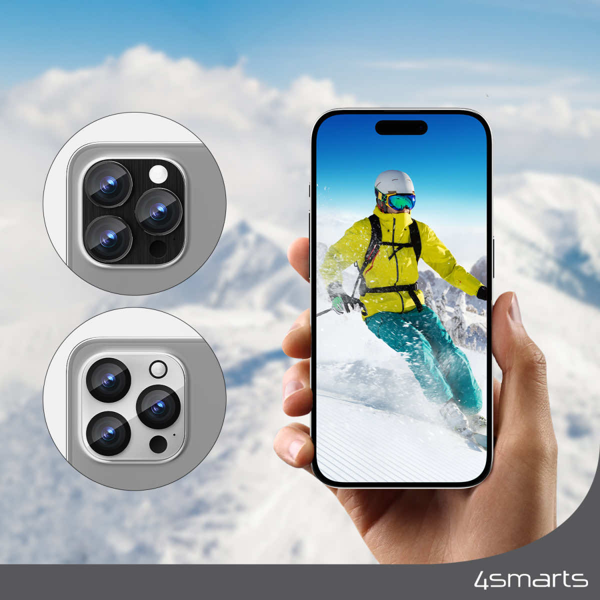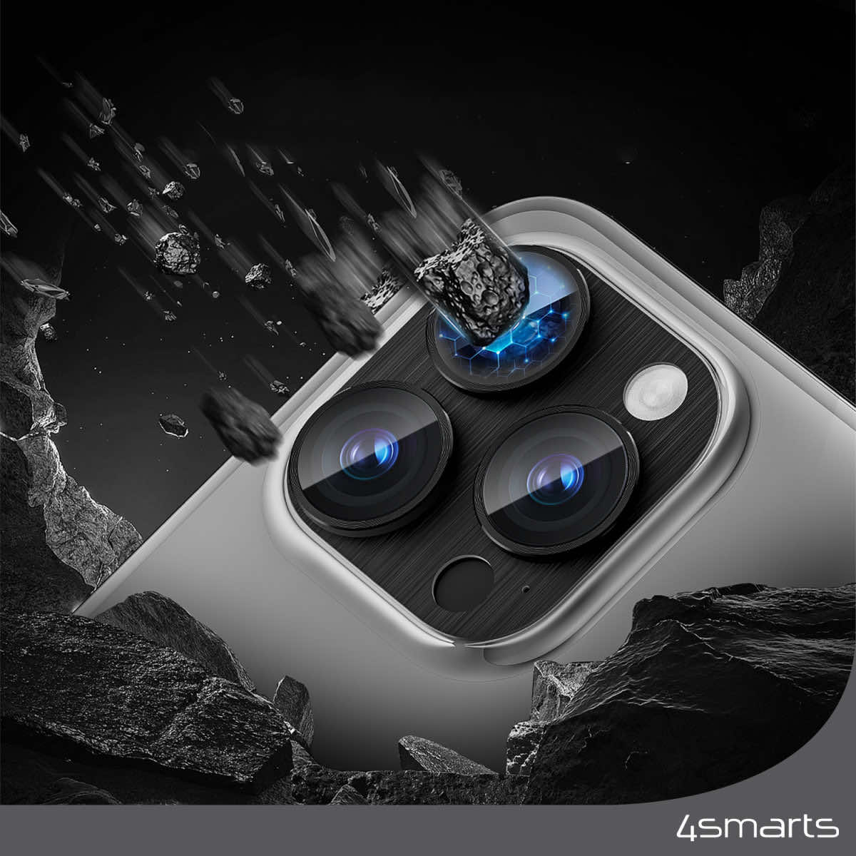 4smarts StyleGlass Camera Lens Protector - 2 броя предпазни плочки за камерата на iPhone 15 Pro, iPhone 15 Pro Max (тъмносив и прозрачен)