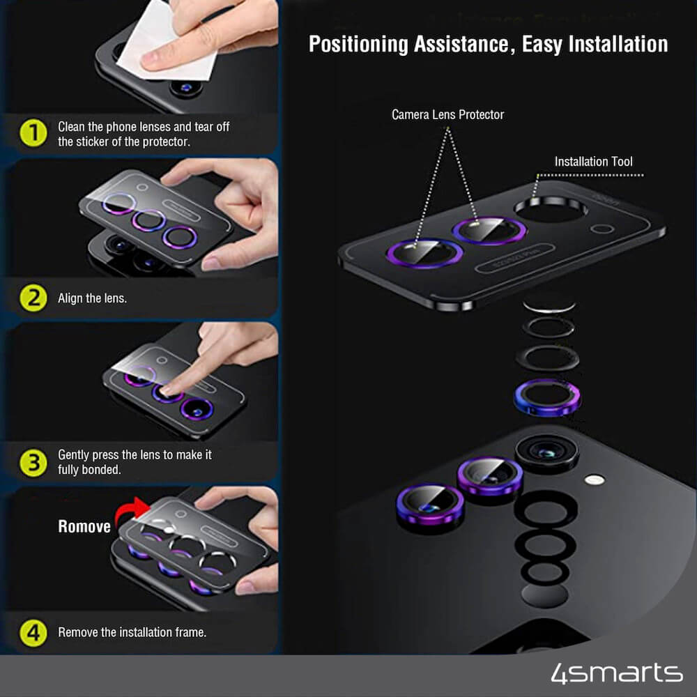 4smarts StyleGlass Camera Lens Protector 4 Pack - 4 комплекта предпазни стъклени лещи за камерата на Samsung Galaxy S23 Ultra (различни цветове)
