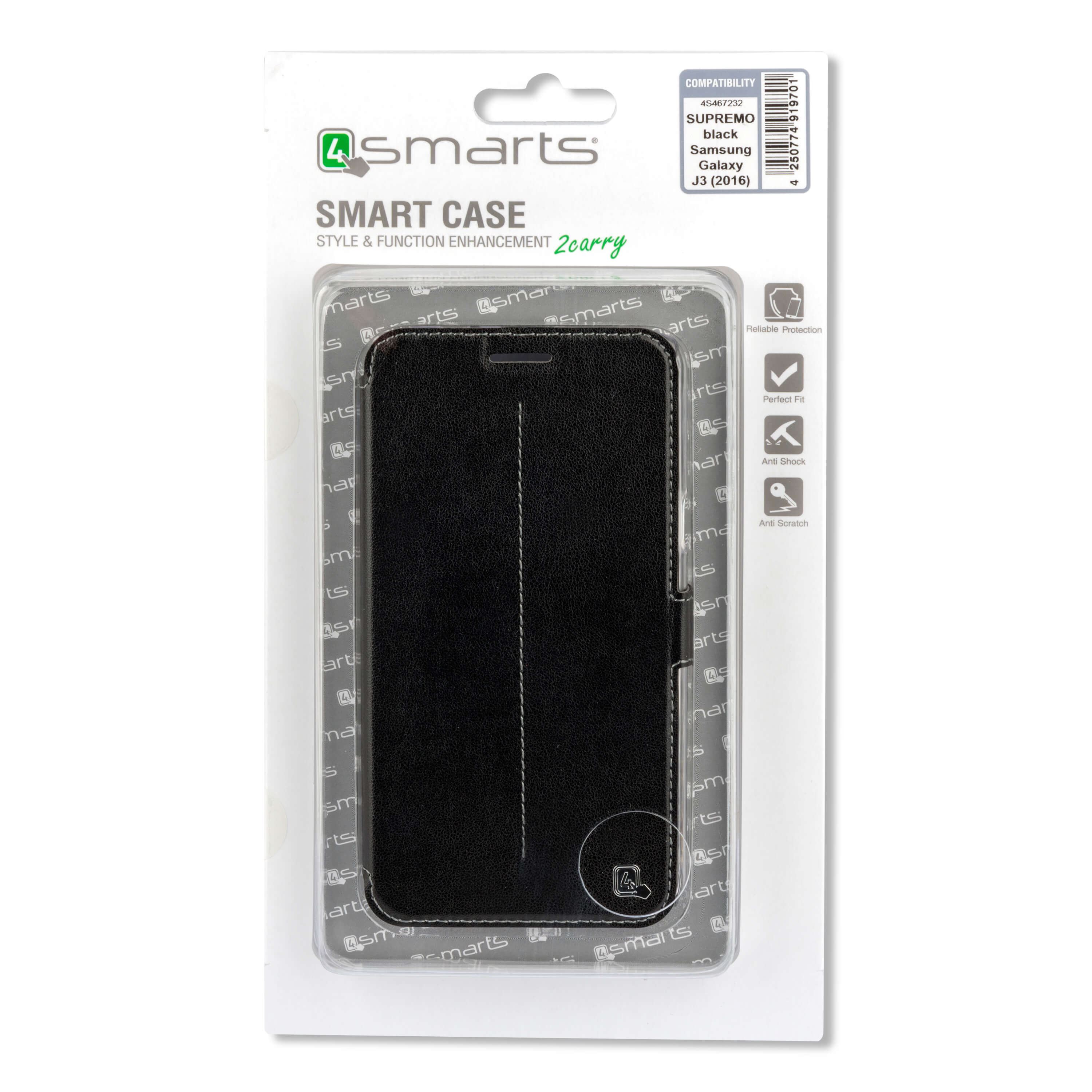 4smarts Supremo Book Flip Case - кожен калъф с поставка и отделение за кр. карта за Samsung Galaxy J3 (2016) (черен)