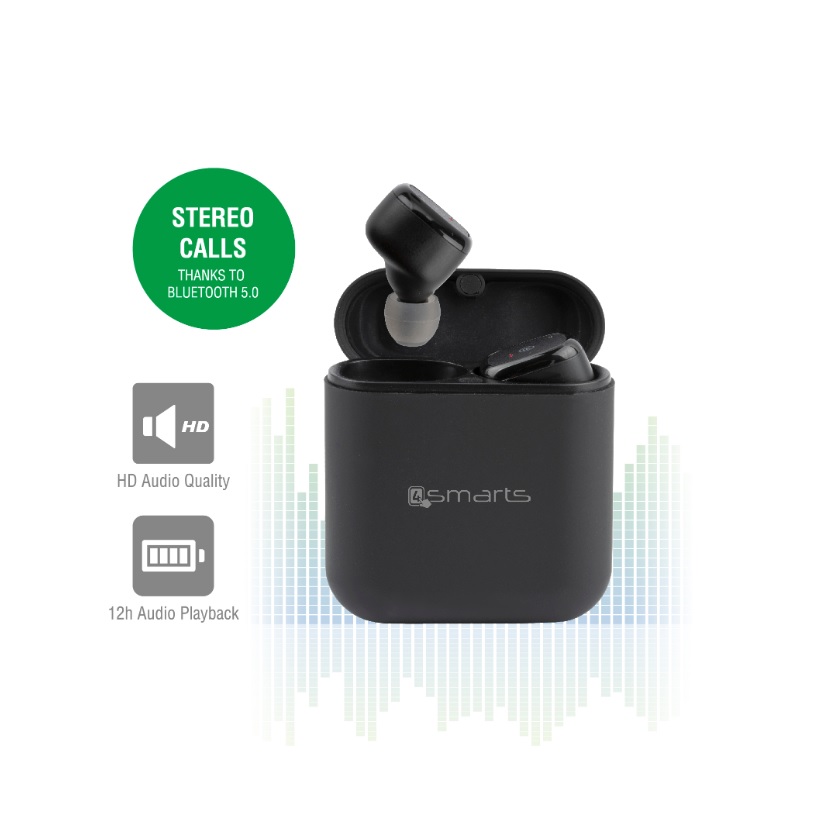 4smarts True Wireless Stereo Headset Eara TWS Buttons - безжични Bluetooth слушалки с микрофон за мобилни устройства (черен)