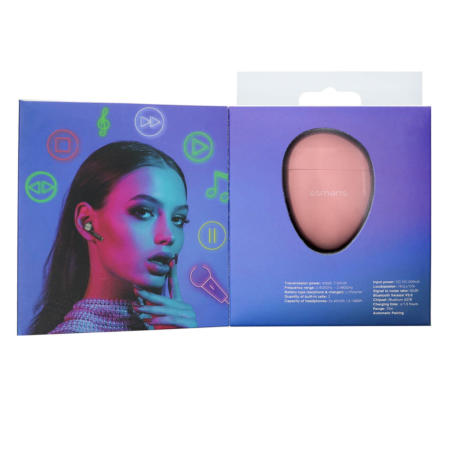 4smarts TWS Bluetooth Headphones Pebble - безжични Bluetooth слушалки с микрофон за мобилни устройства (розов)