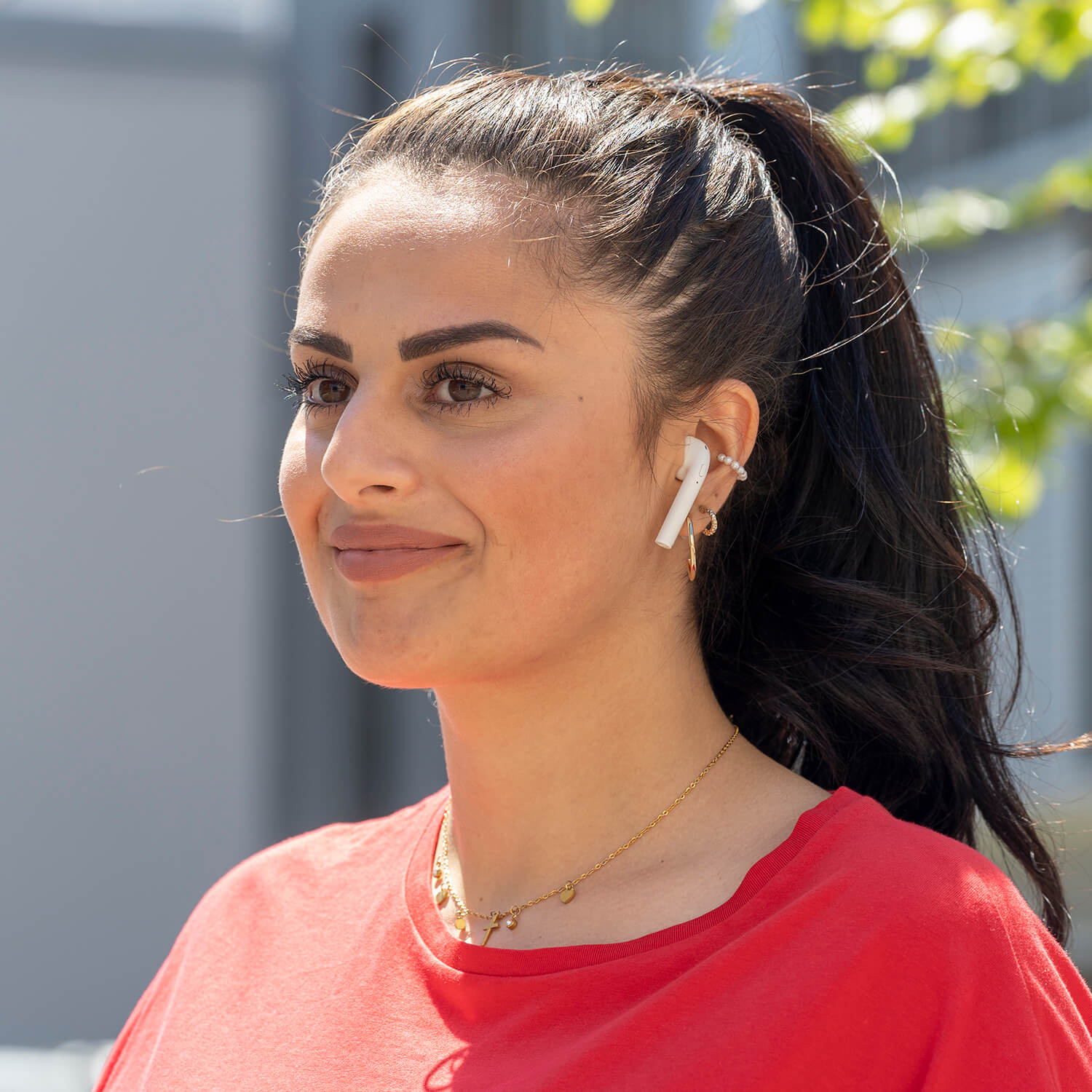 - Вашето устройство автоматично се свързва с Eara SkyPods, след като са извадени от кутията, така че можете да използвате една слушалка за моно или и двете за стерео звук