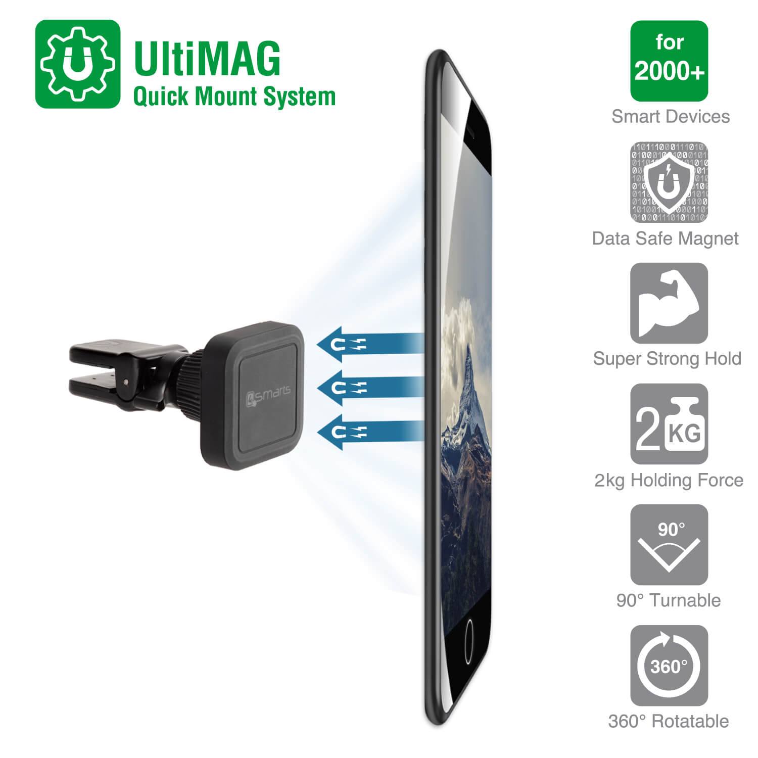 4smarts Ultimag Magnetic Vent Car Holder Clampmag - магнитна поставка за радиатора на кола за iPhone и смартфони (черен)