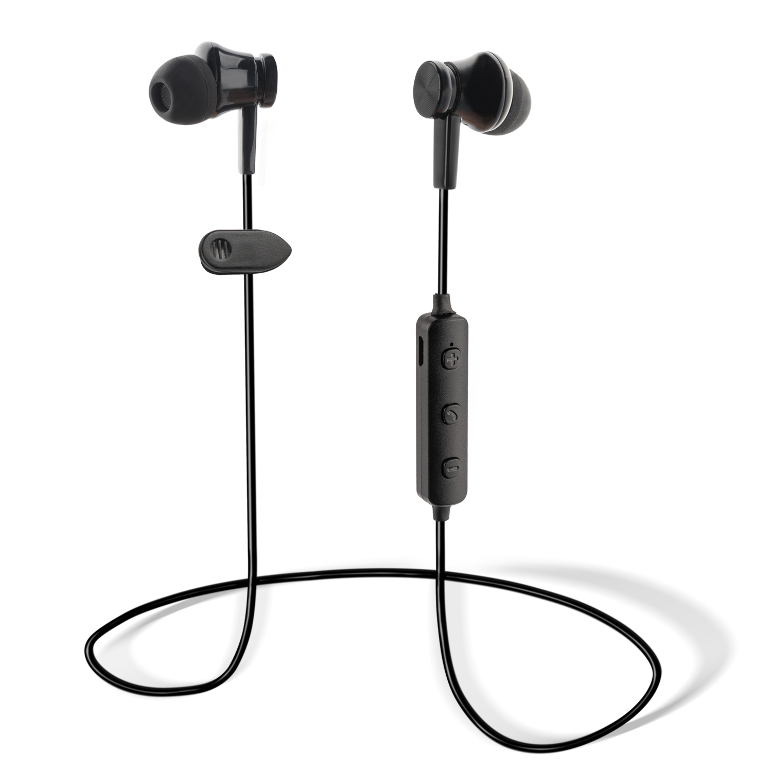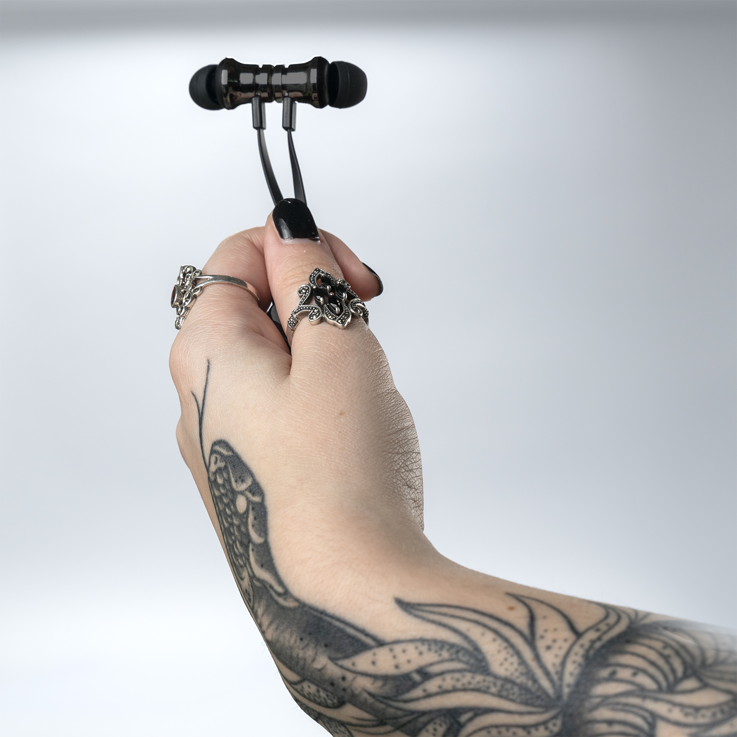 - Магнитните слушалки могат да бъдат свързани заедно, така че можете да ги сложите удобно около врата си, когато не се използват
