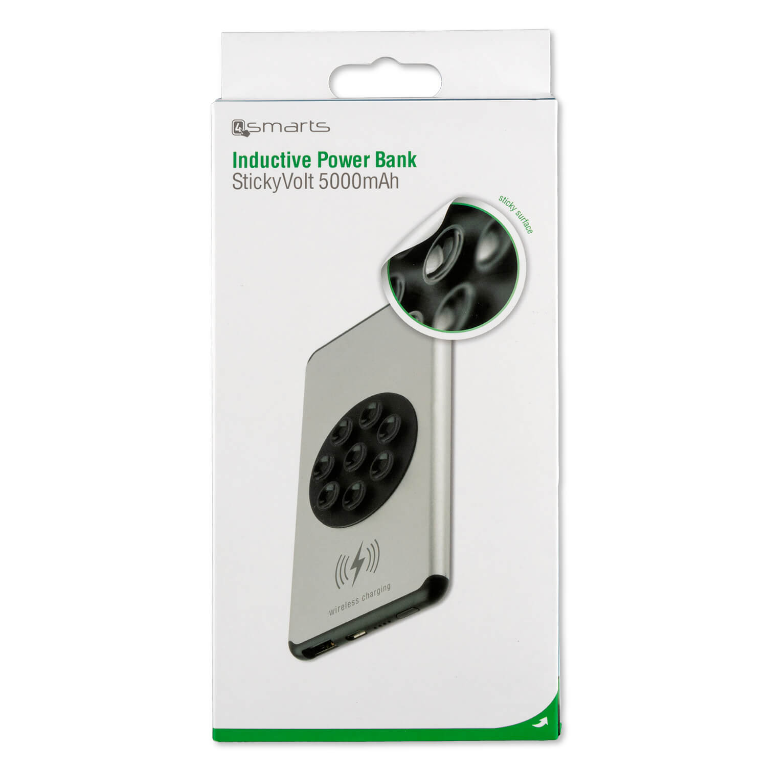 4smarts Wireless Power Bank StickyVolt 5000 mAh with Qi - външна батерия с технология за безжично зареждане (сив)