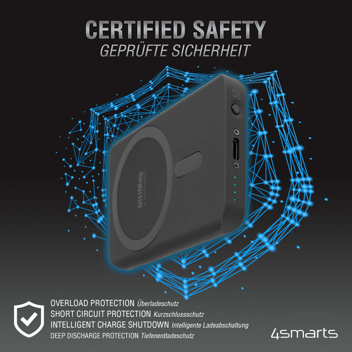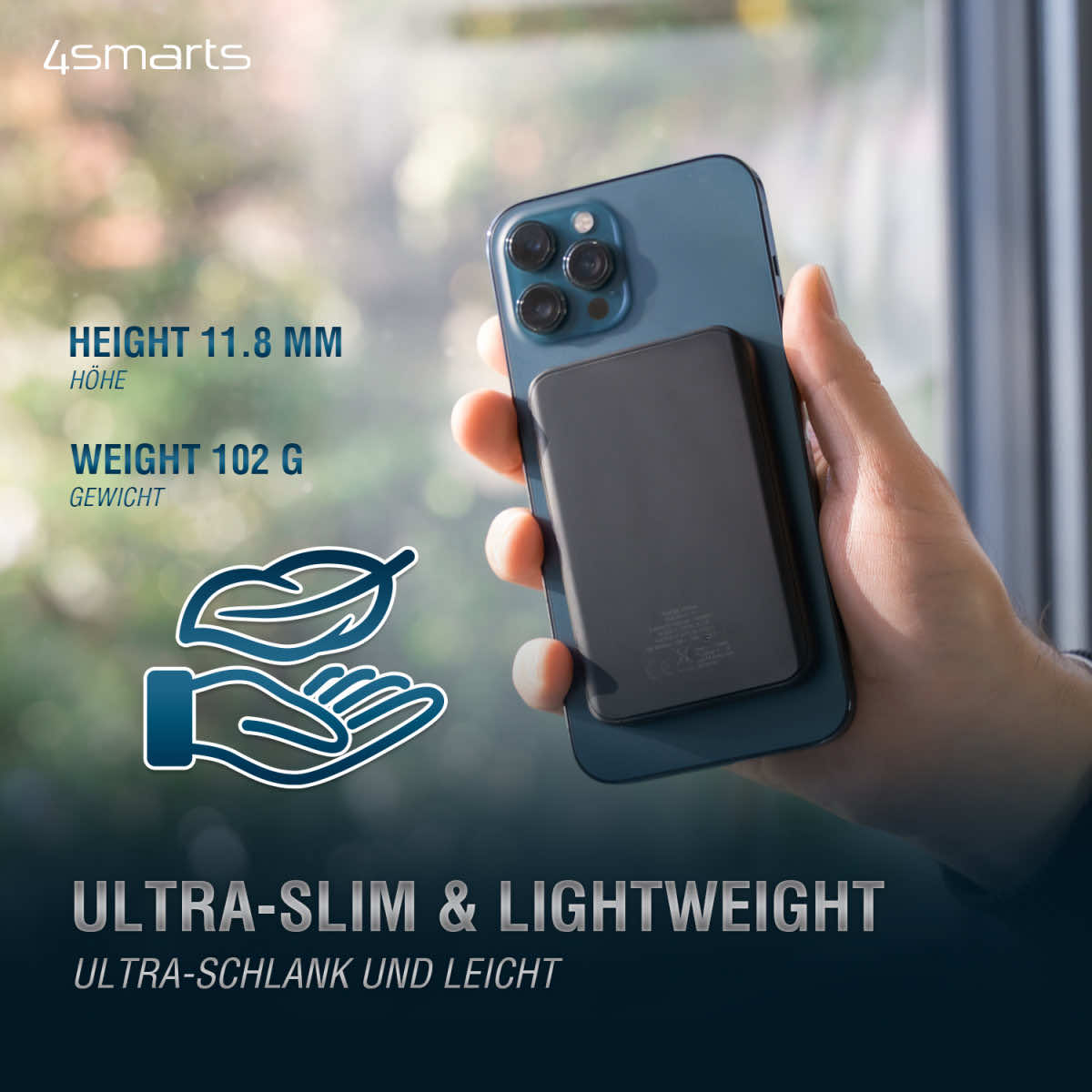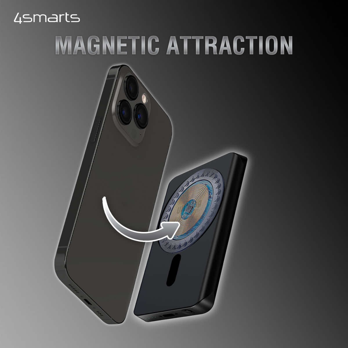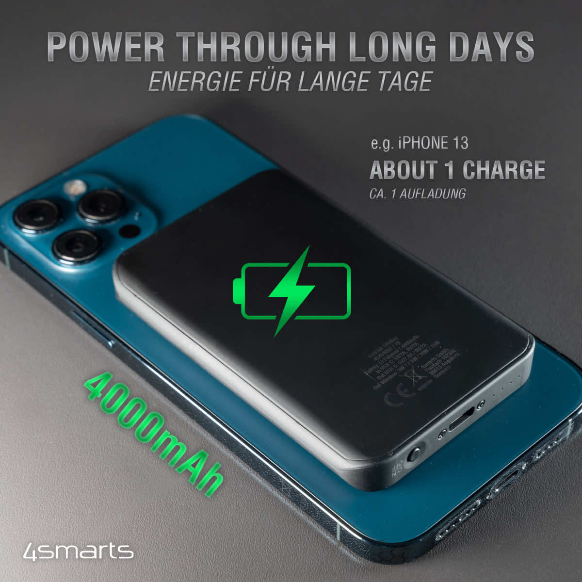 - Възползвайте се от магнитното MagSafe зареждане на iPhone моделите с MagSafe технология с тази външна батерия на 4smarts