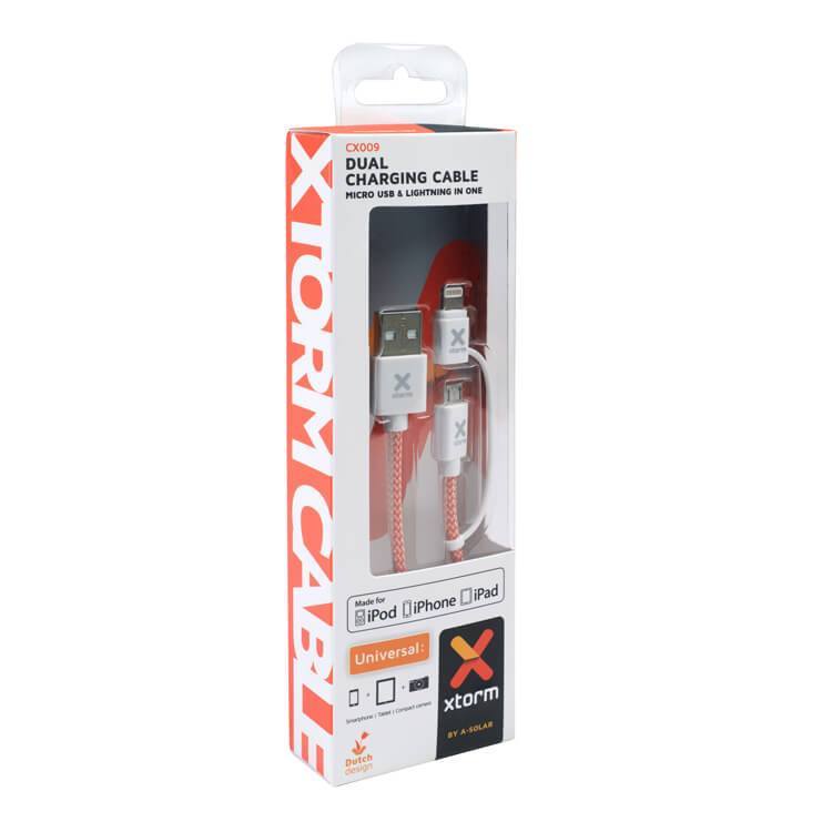 • Изключително практичен кабел с два накрайника: Lightning и microUSB