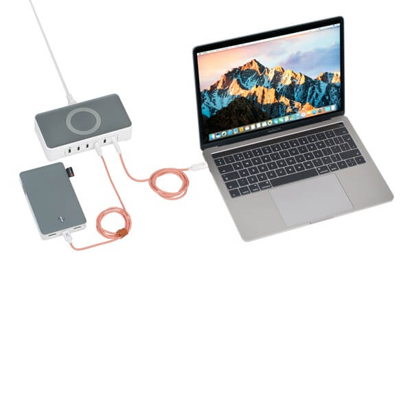 § Качествено зарядно разполагащо с пет USB-A изхода, USB-C изход и с функция безжично зареждане за смартфони и таблети