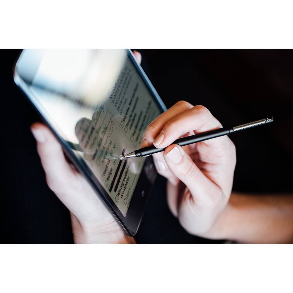 - Твърдият, алуминиев и стоманен стилус разполага с клипс за лесно носене навсякъде с вас