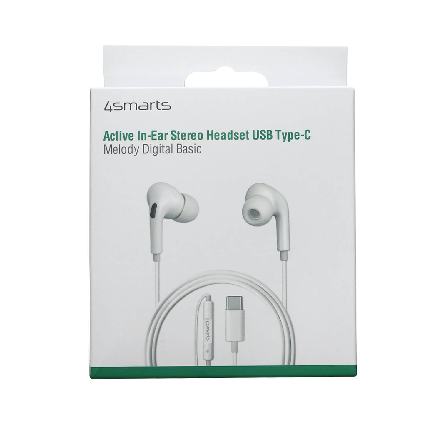 Активни слушалки с USB-C кабел, управление на звука и микрофон (бял) - 4smarts Active In-Ear Stereo Headset Melody Digital Basic USB-C