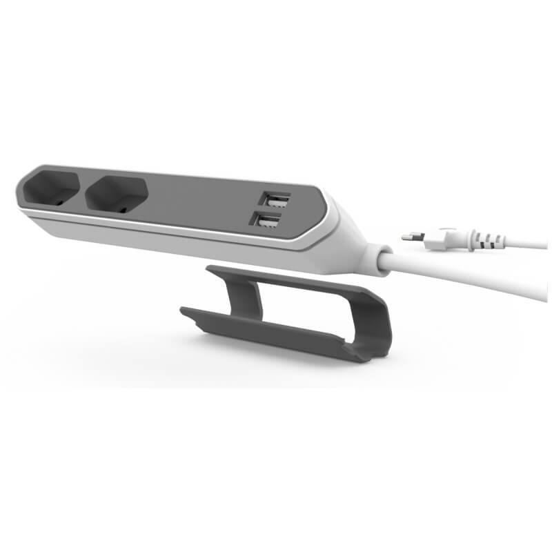 Allocacoc PowerBar USB - разклонител с 2 USB порта за зареждане на мобилни устройства с приставка за закрепване