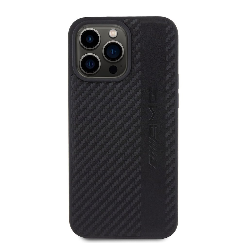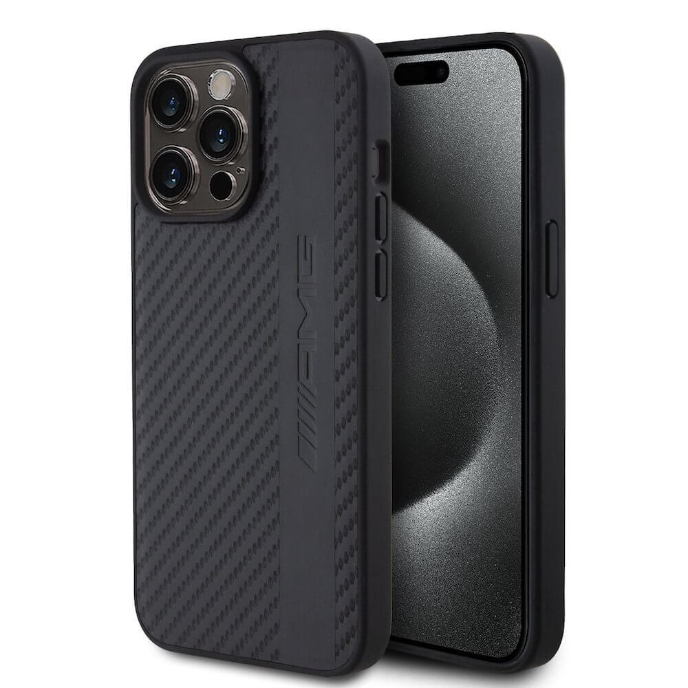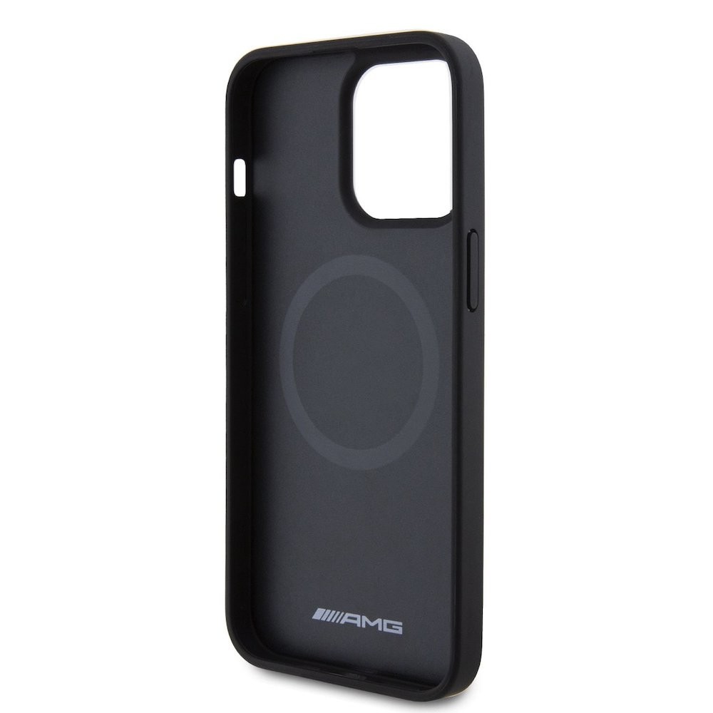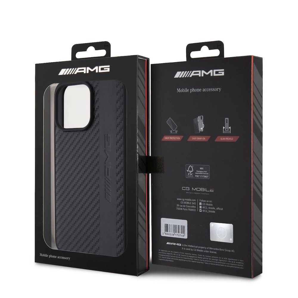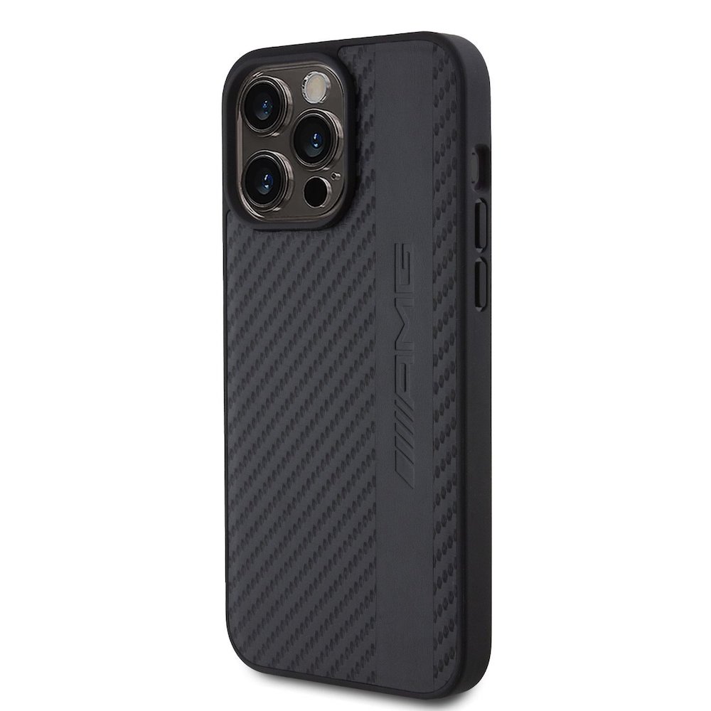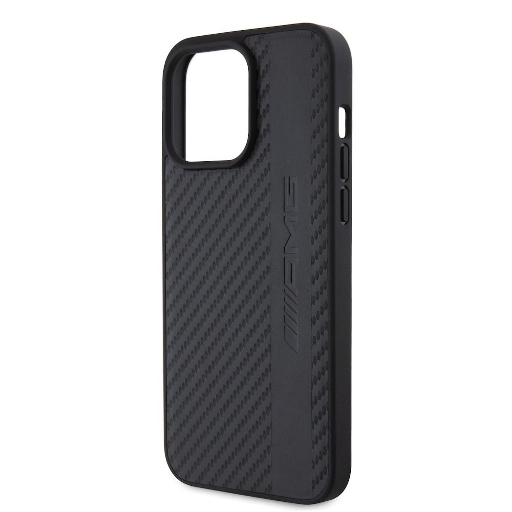 AMG Carbon Effect Leather MagSafe Case - дизайнерски кожен кейс с висока защита с MagSafe за iPhone 15 Pro Max (черен)