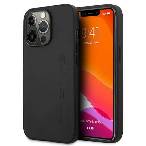 AMG Hot Stamped Genuine Leather Hard Case - дизайнерски кожен кейс (естествена кожа) за iPhone 13 Pro (черен)