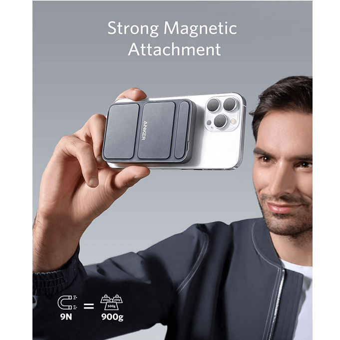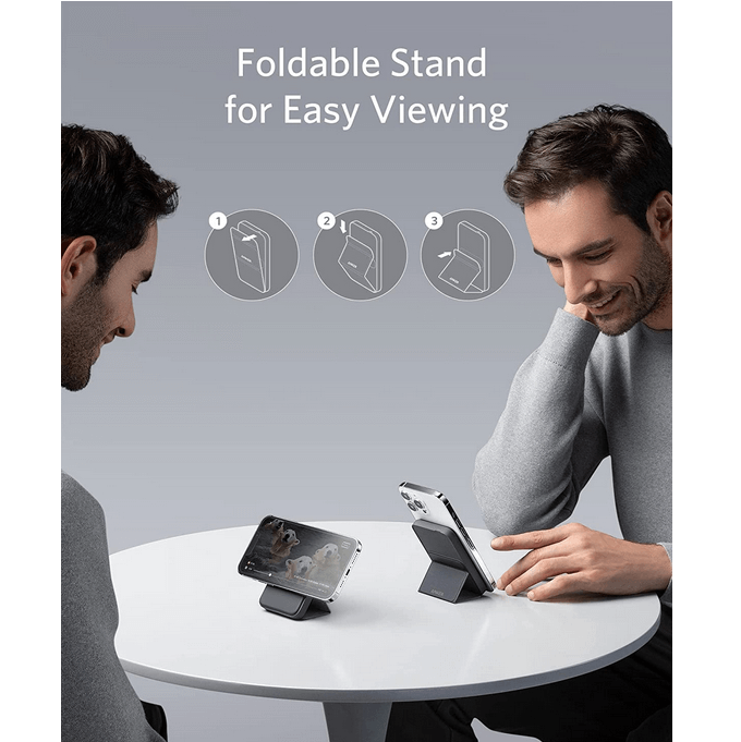 Anker 622 Magnetic Battery MagGo, 5000 mAh - сгъваема външна батерия с USB-C порт и безжично зареждане с MagSafe (черен)