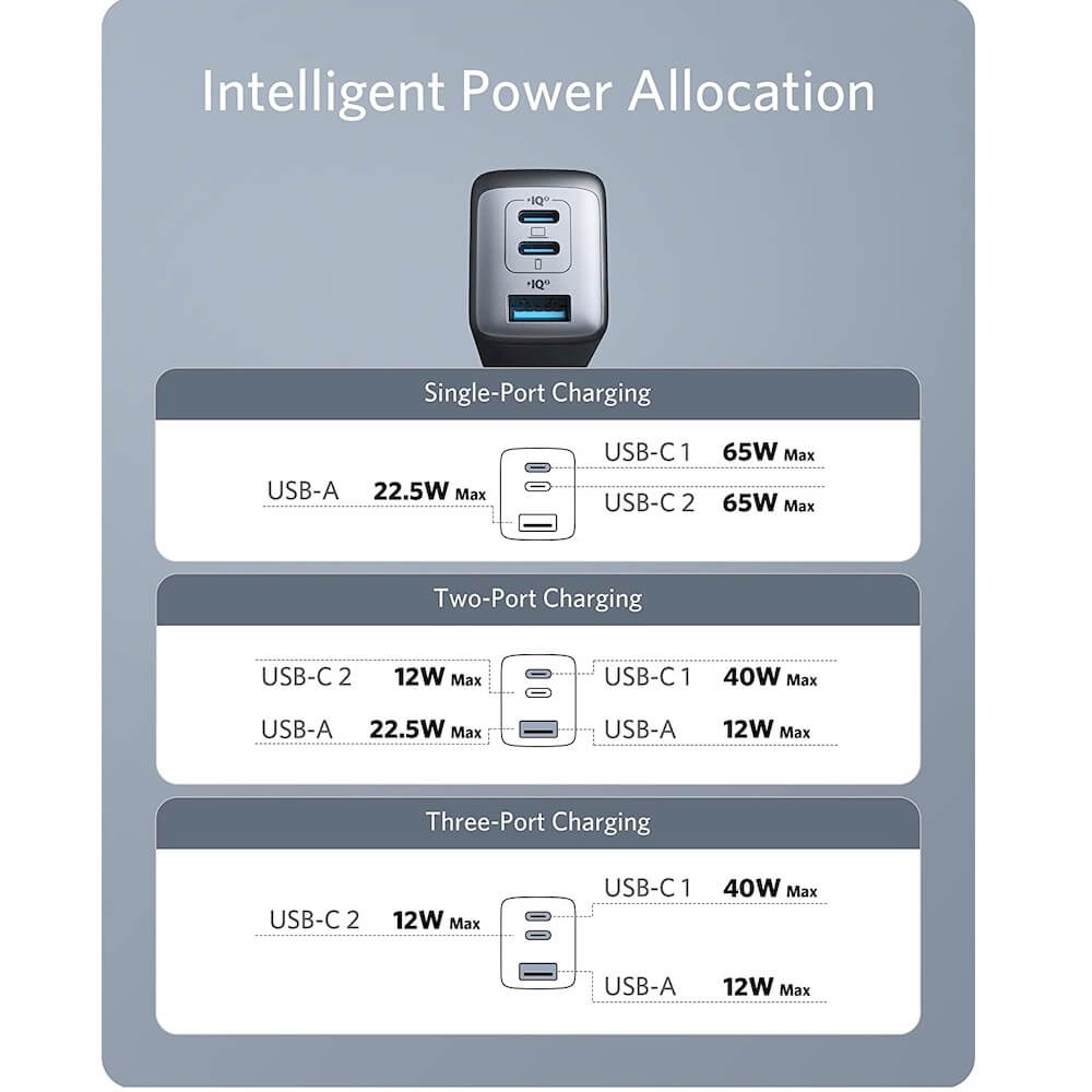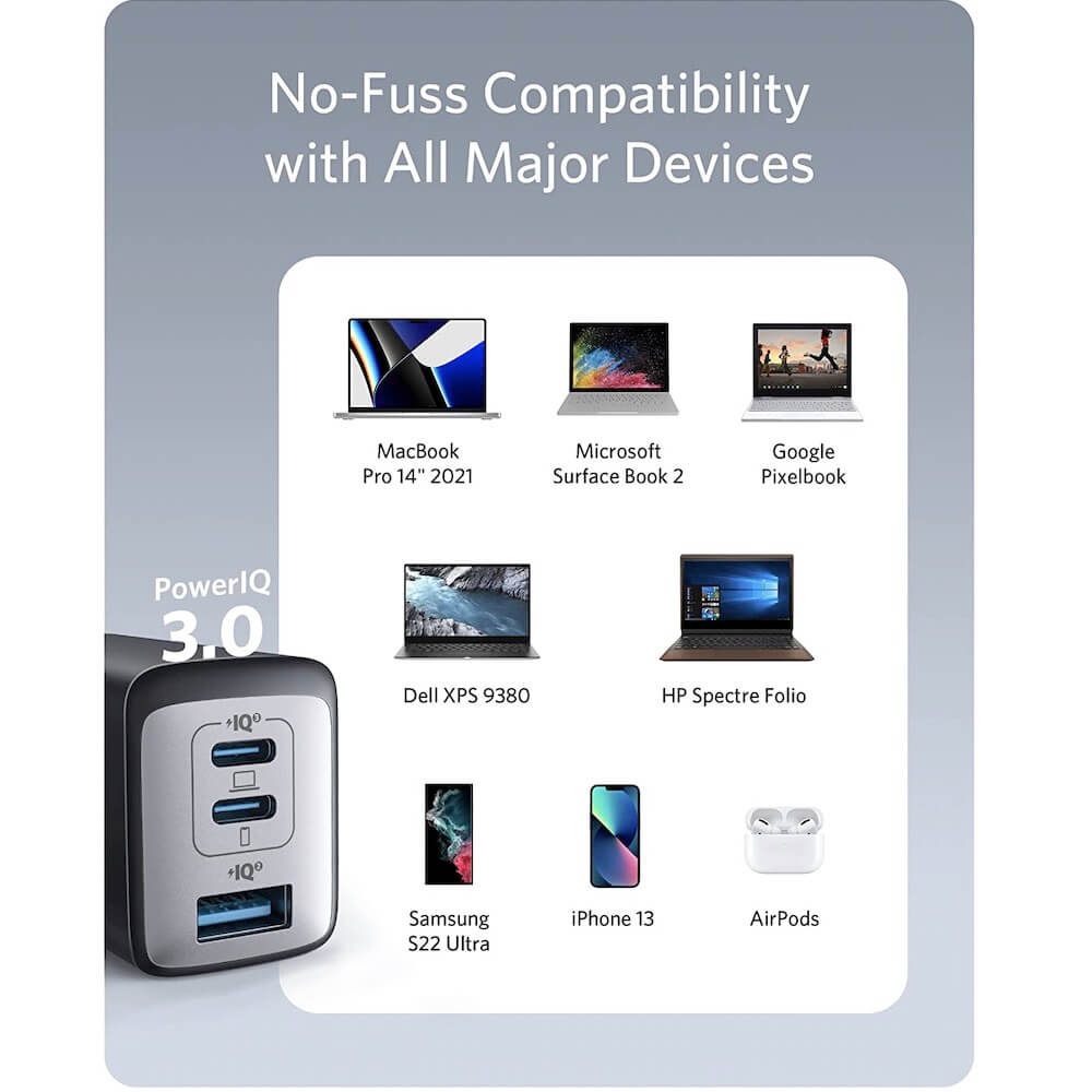 - Anker 735 Nano II Wall Charger 65W е по-малко от зарядно устройство на MacBook, но също толкова бързо