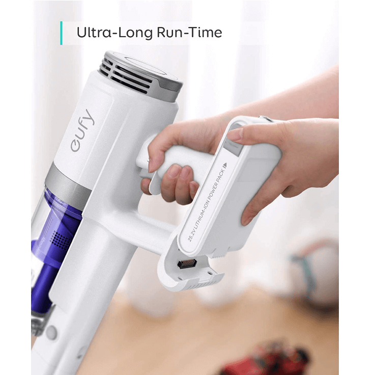 - Eufy HomeVac S11 Reach - акумулаторна прахосмукачка, с отделяща се батерия, с лек, безжичен дизайн и 120W мощност за дълбоко почистване на килими, твърди подове и др.
