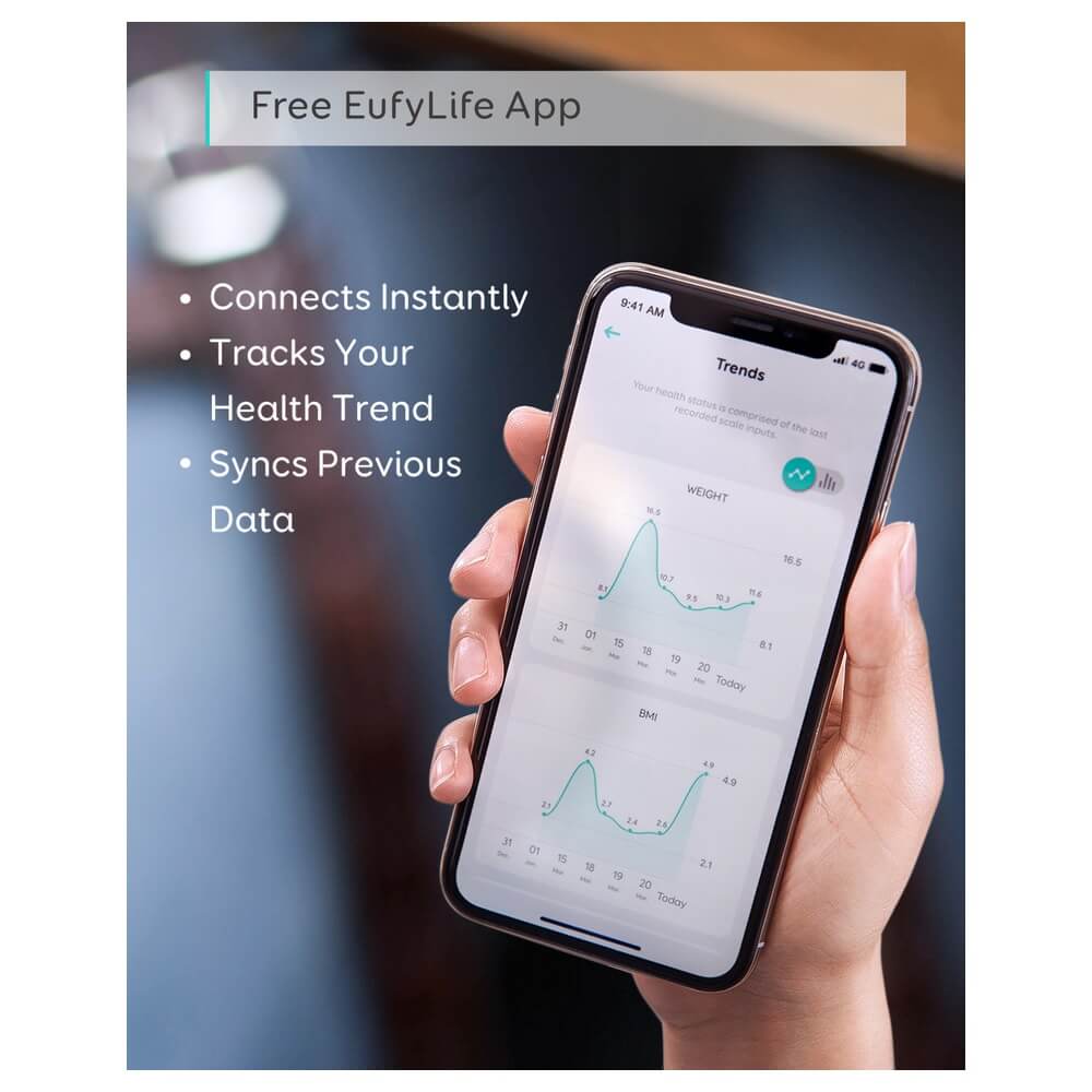 - Просто свържете Smart Scale с приложението EufyHome на вашия смартфон, стъпете върху кантара и вижте резултатите си