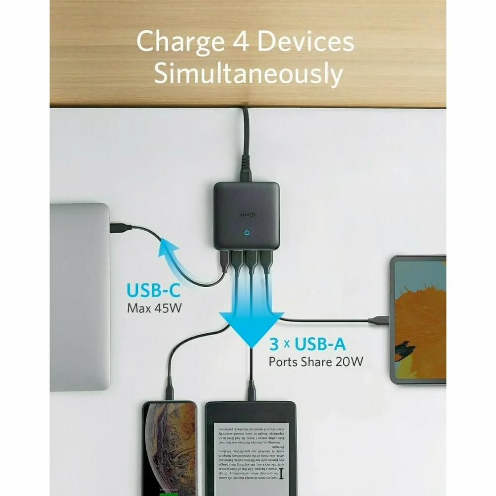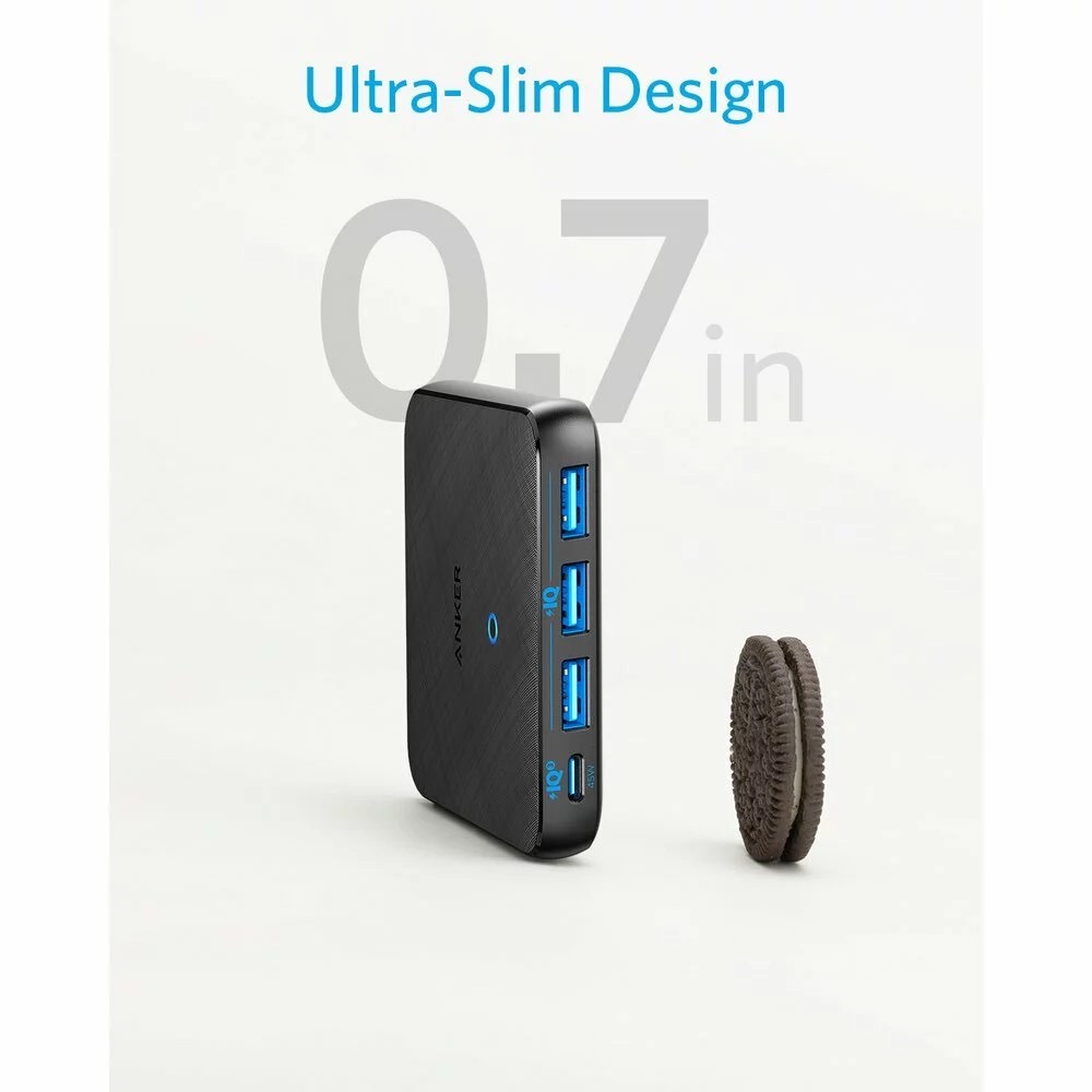 Anker GaN PowerPort Atom III Slim 65W - захранване за ел. мрежа с 3xUSB-A и 1xUSB-C изходи с технология за бързо зареждане (черен)