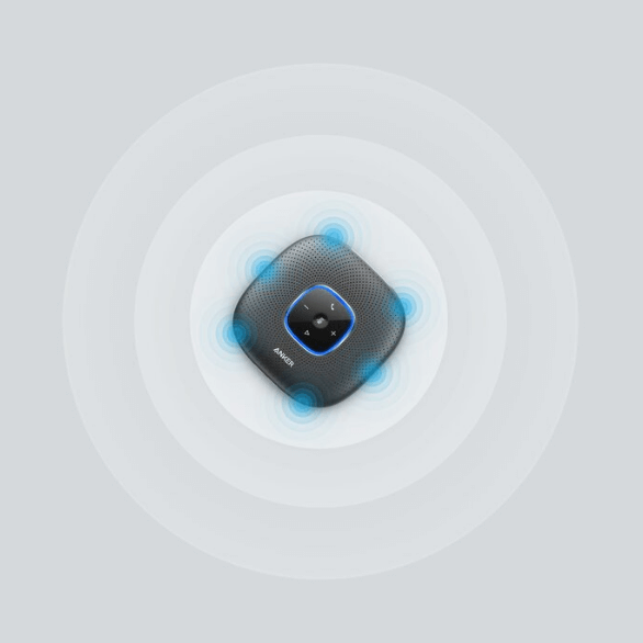 - 360° Voice Pickup: 6 вградени микрофона предлагат пълно покритие от 360 ° в сбирки за до 8 души
