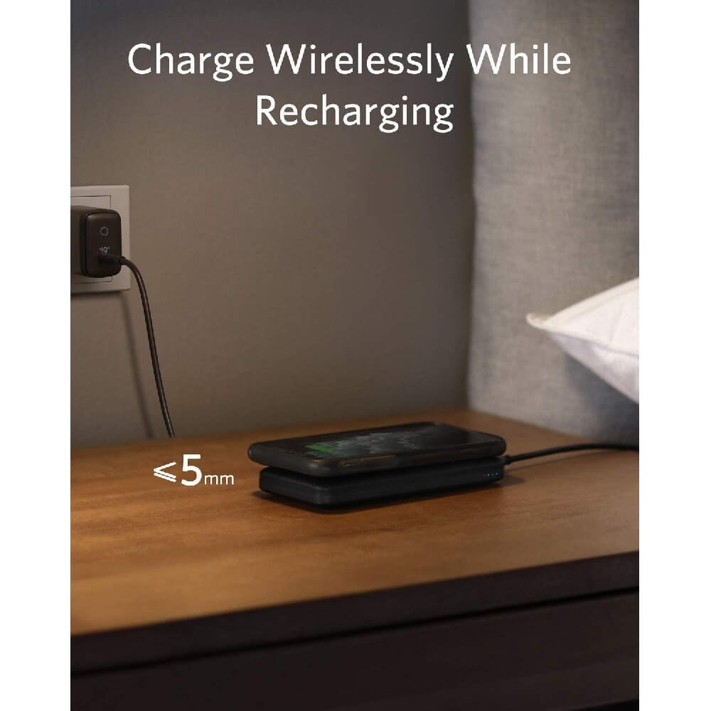 Anker PowerCore 10000 mAh Hybrid Wireless Portable Charger - безжична преносима външна батерия с USB-C вход и два USB-A изхода (черен)