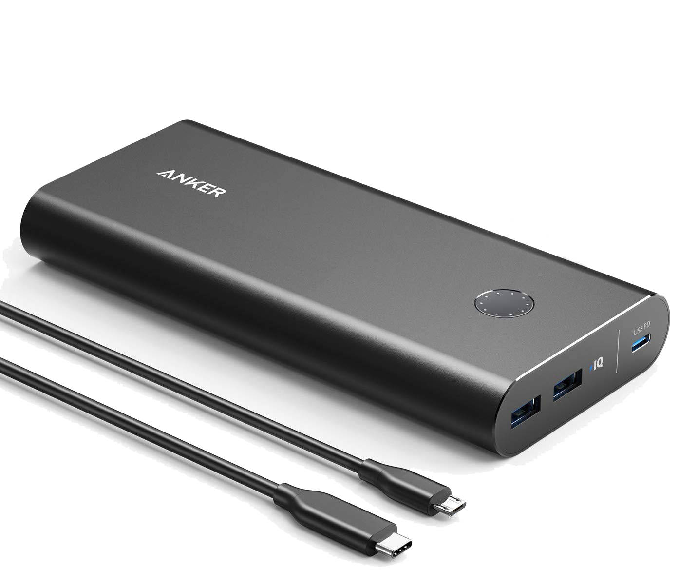 - Преносима външна батерия с общо 3 USB изхода: 1 х USB-C с PD протокол за бързо зареждане и 2 х USB порта, снабдени с технологията PowerIQ на Anker