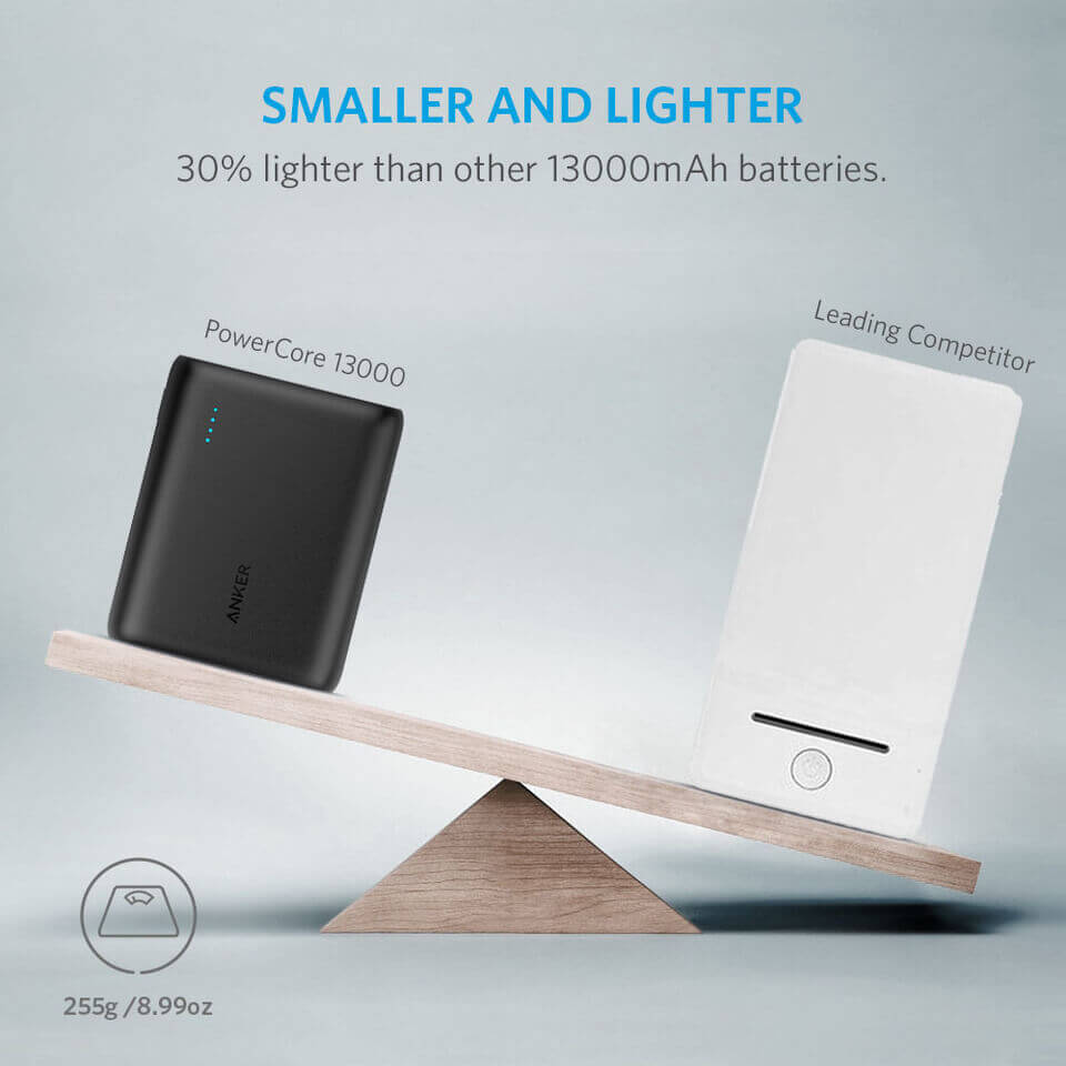 Anker PowerCore Compact 13000 mAh с PowerIQ и VoltageBoost - преносима външна батерия с 2 USB изхода за зареждане на мобилни устройства (черен)