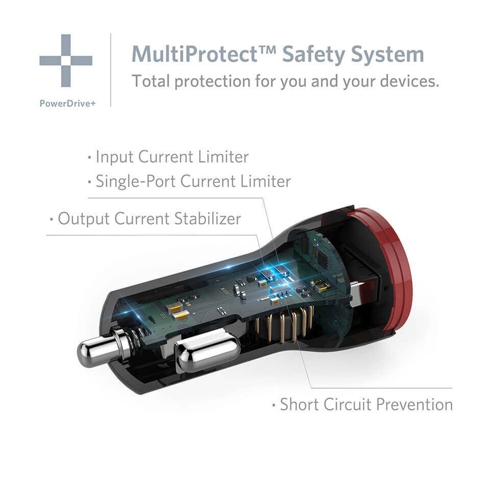 Anker PowerDrive+ Quick Charge 3.0 с PowerIQ - зарядно за кола (3.0 Ампера) с технология за бързо зареждане (черен)