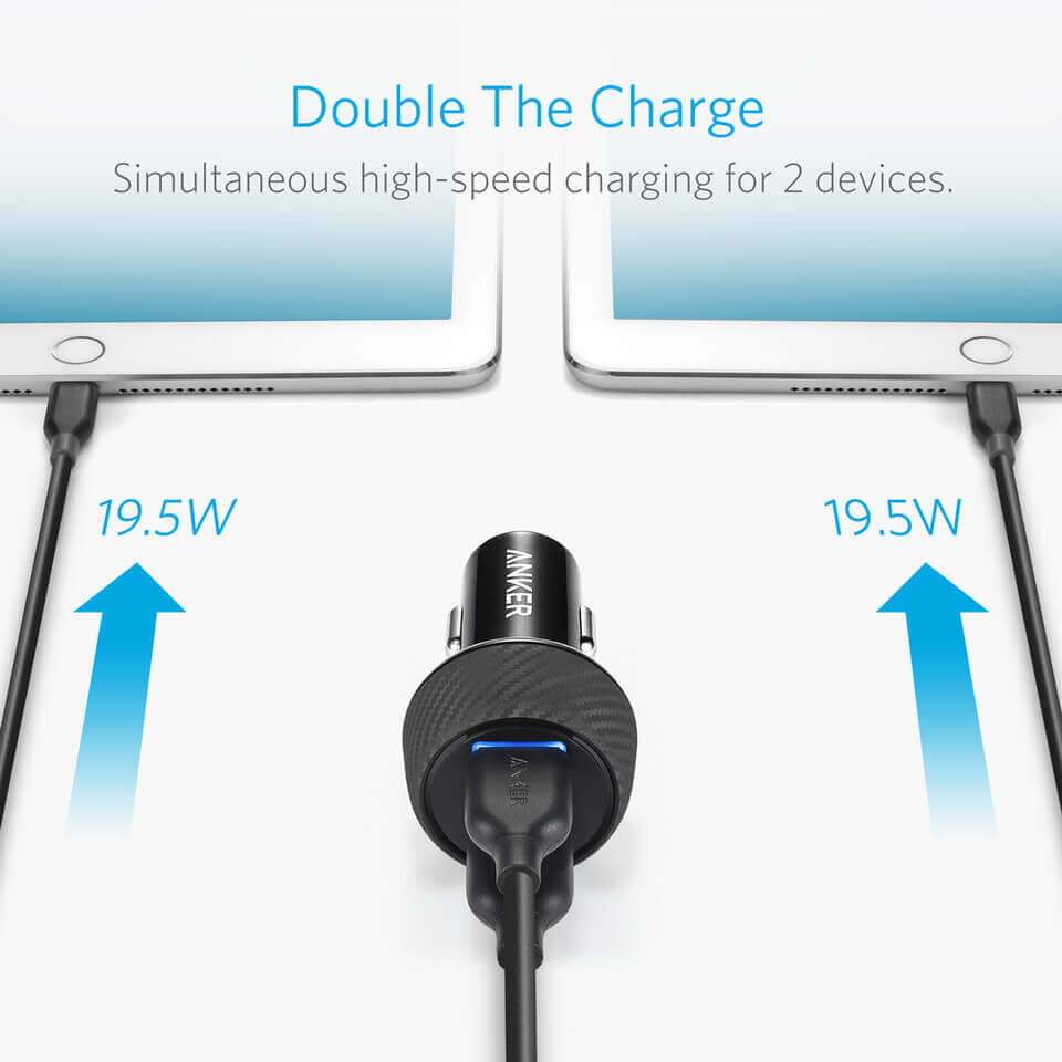 Anker PowerDrive Speed 2 Ports Quick Charge 3.0 39W Dual USB Car Charger с PowerIQ и VoltageBoost - зарядно за кола с два USB изхода и технология за бързо зареждане (черен)