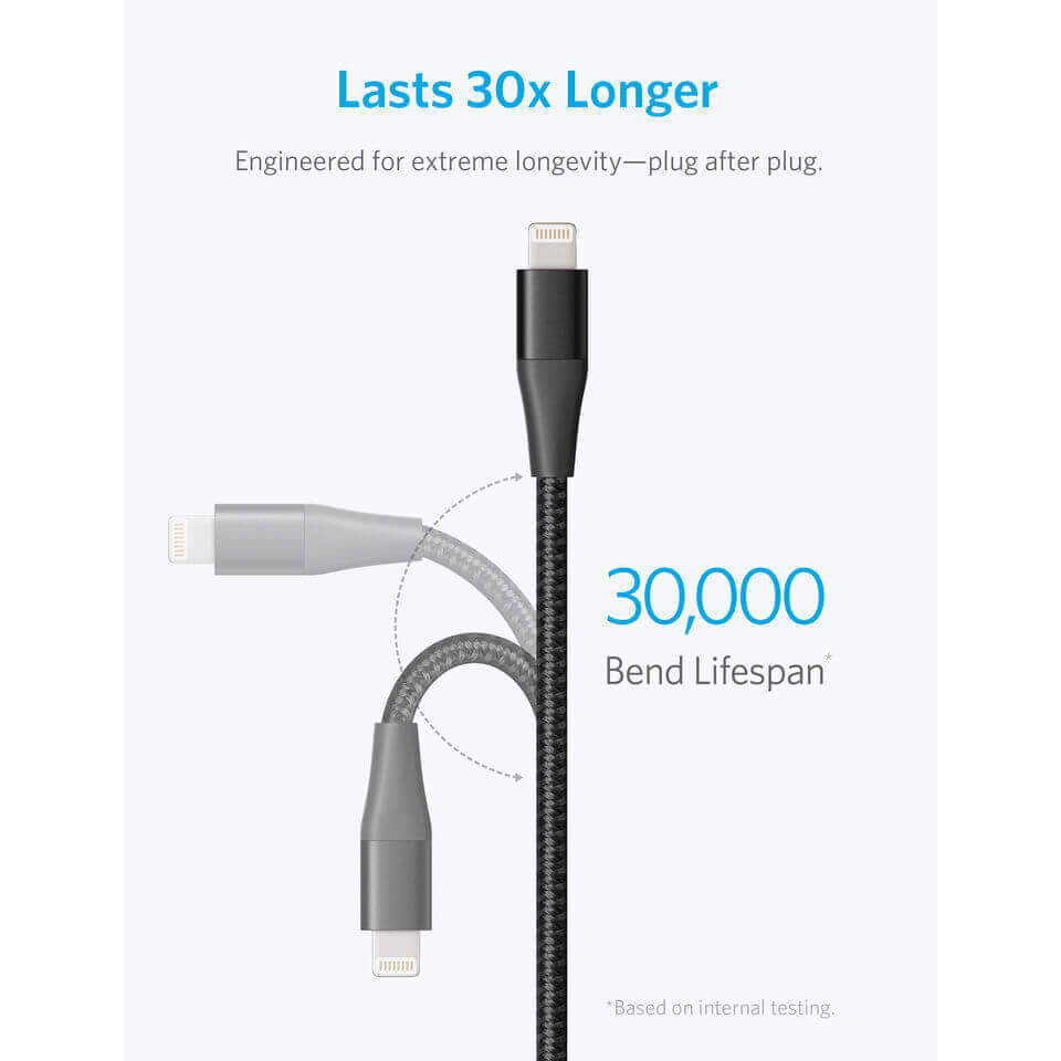 Anker Powerline+ II Lightning Lightning cable 1.8m - сертифициран Lightning кабел за iPhone, iPad и iPod с Lightning (1.8 м) (черен)