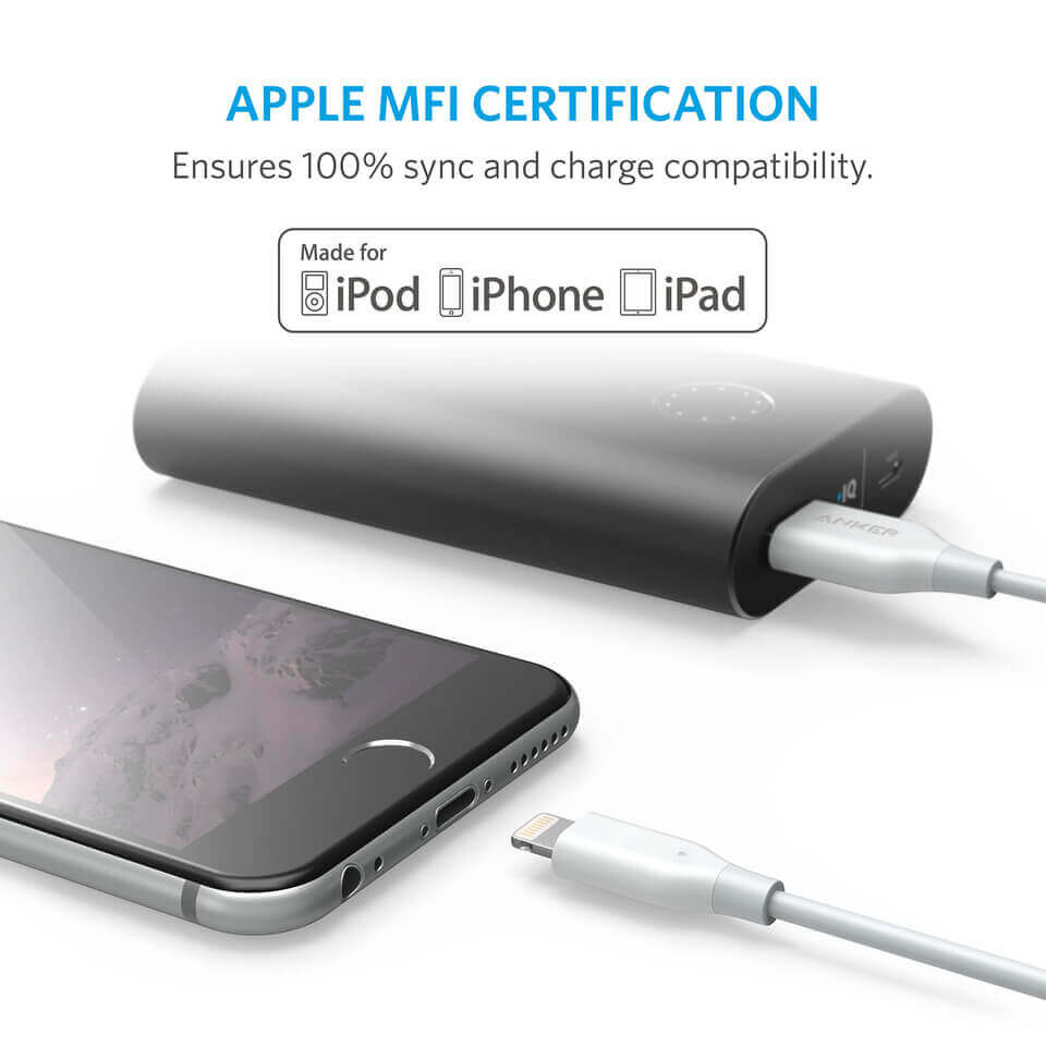 Anker Powerline Lightning cable - сертифициран Lightning кабел за iPhone, iPad и iPod с Lightning (0,9 м) (бял)