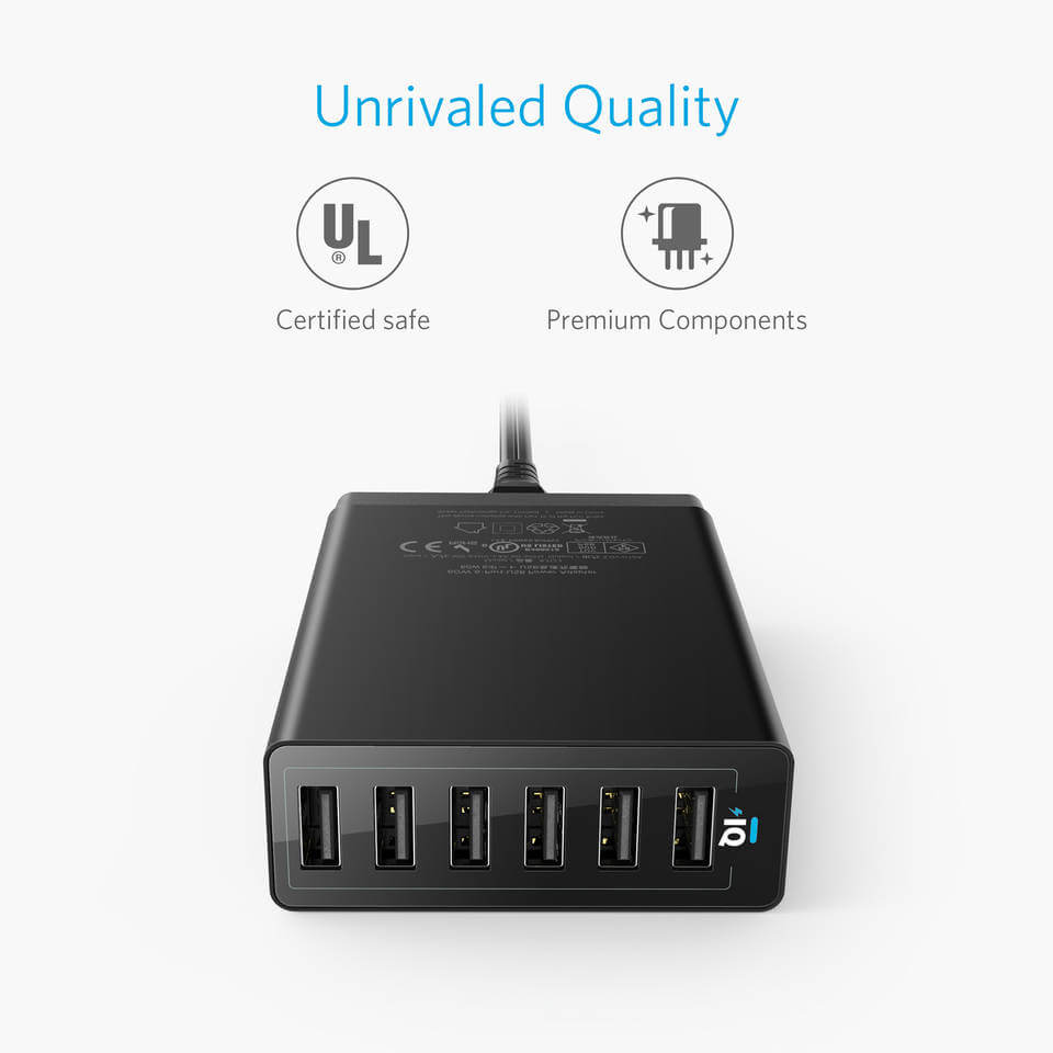 Anker PowerPort 6 Ports (60W) с PowerIQ и VoltageBoost - захранване с 6 x USB изхода за мобилни телефони и таблети (черен)