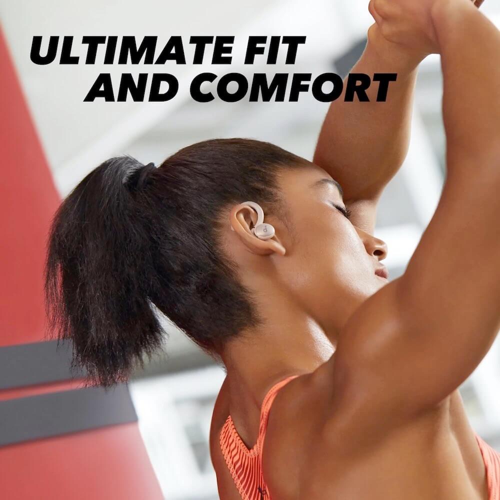 - Истински безжичните слушалки с изключително гъвкави накрайници и куки осигуряват удовлетворяващо и несравнимо прилепване, независимо колко тежка е вашата тренировка. В комплекта има богат избор от накрайници, подходящи за всеки размер уши. Просто завъртете куките за уши и ги поставете в зад ухото и сте готови за тренировка