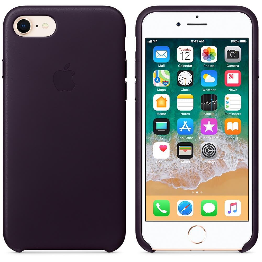 Apple iPhone Leather Case - оригинален кожен кейс (естествена кожа) за iPhone 8, iPhone 7 (тъмнолилав)