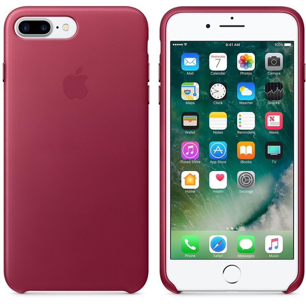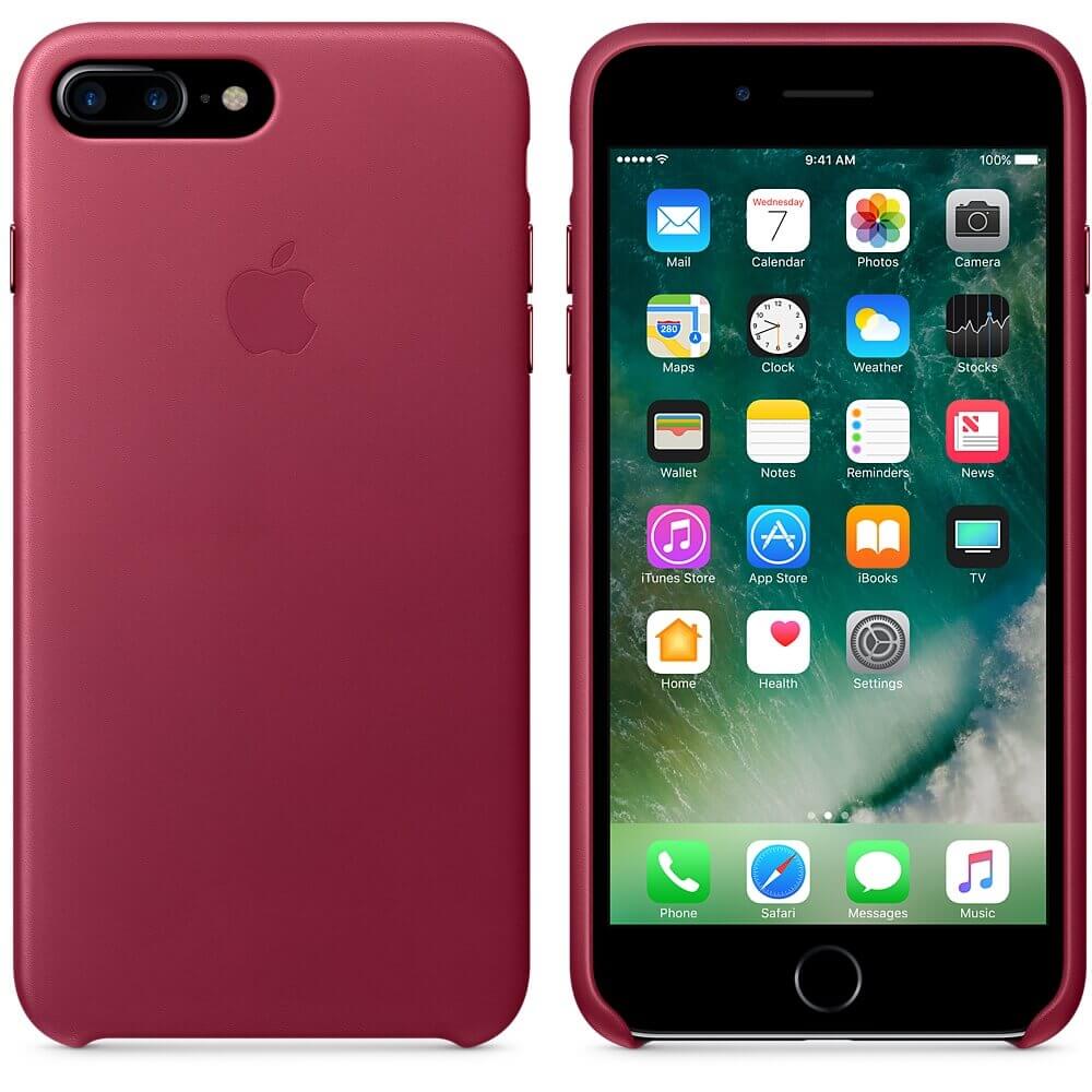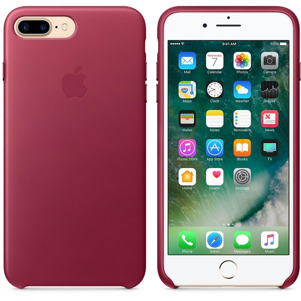 Apple iPhone Leather Case - оригинален кожен кейс (естествена кожа) за iPhone 8 Plus, iPhone 7 Plus (светлочервен)