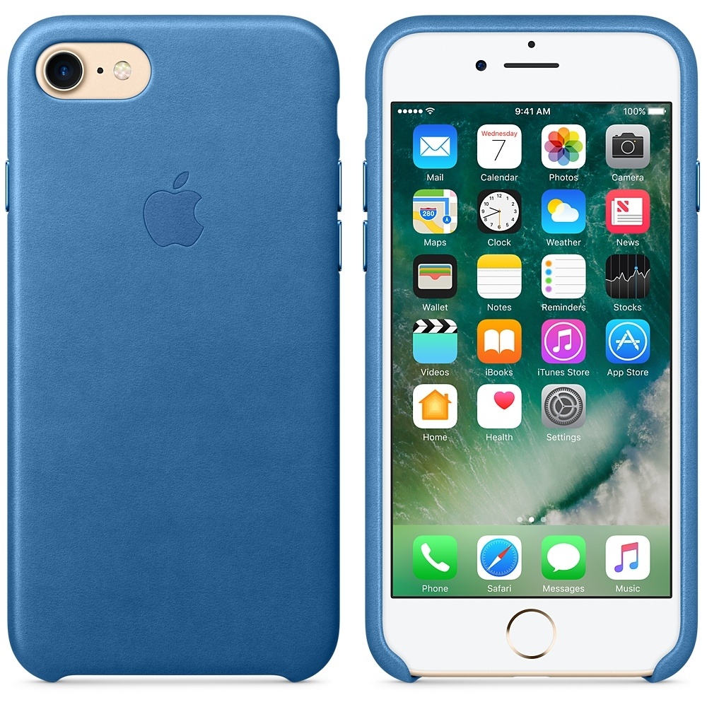 Apple iPhone Leather Case - оригинален кожен кейс (естествена кожа) за iPhone 8, iPhone 7 (морско синьо)