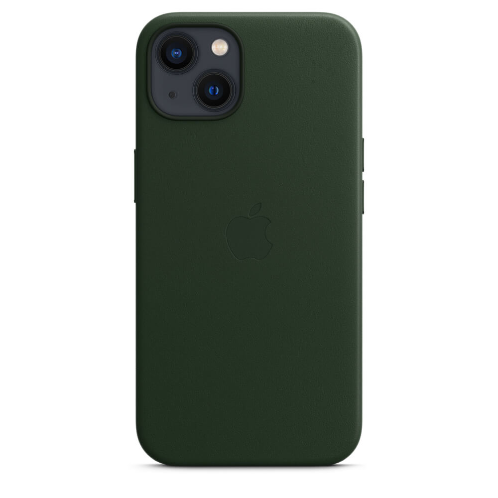 Apple iPhone Leather Case with MagSafe - оригинален кожен кейс (естествена кожа) за iPhone 13 (зелен)