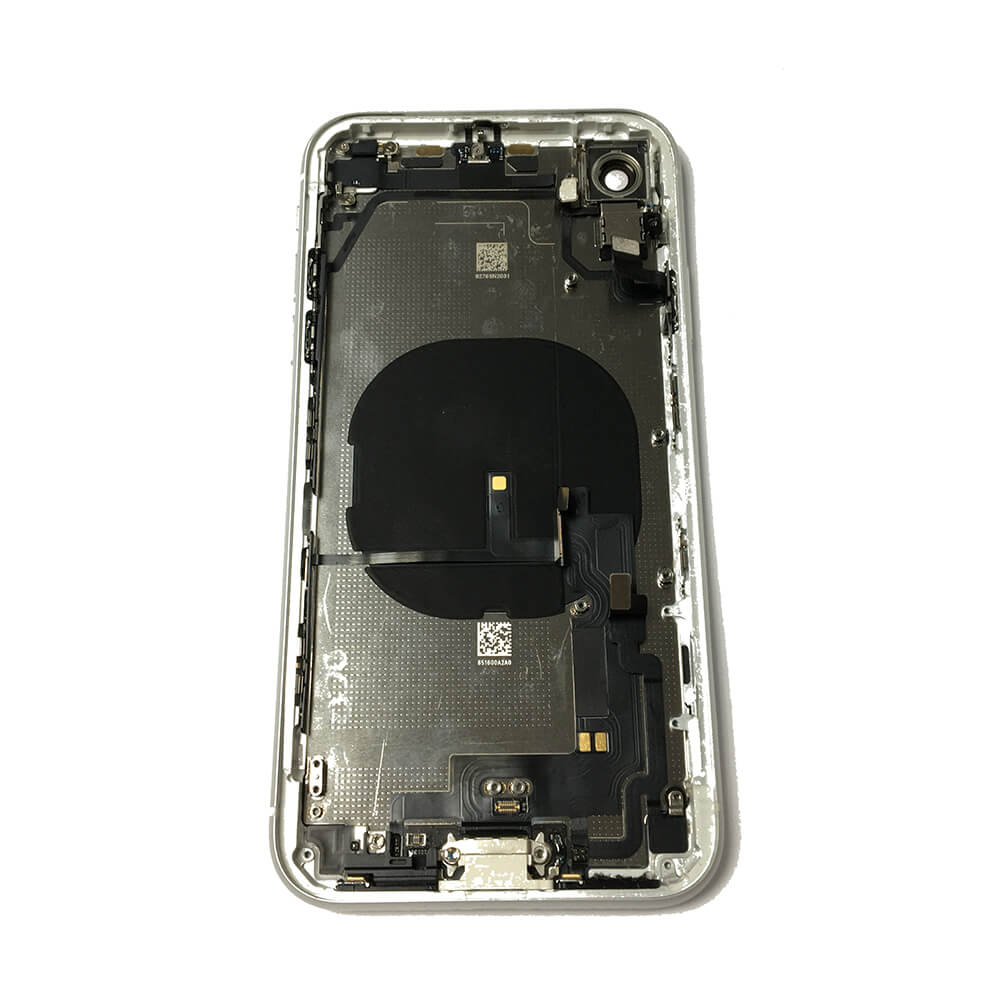 - iPhone XR Backcover Full Assembly - резервен заден капак заедно с Lightning порт, бутони за звука и вибрация, бутон за включване (on/off), лента за безжично зареждане, светкавица и заден микрофон