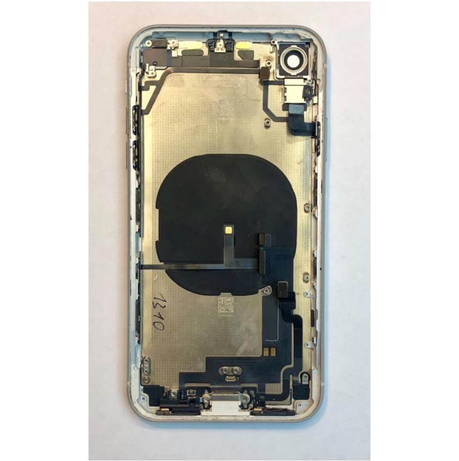 - iPhone XR Backcover Full Assembly - резервен заден капак заедно с Lightning порт, бутони за звука и вибрация, бутон за включване (on/off), лента за безжично зареждане, светкавица и заден микрофон и сим трей
