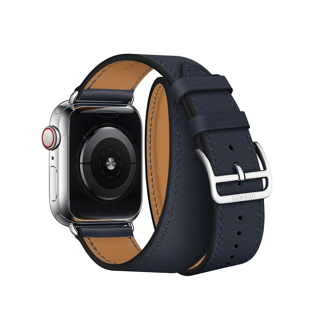 Apple Watch Hermès Series 4, 40mm Stainless Steel Case with Indigo Swift Leather Double Tour, GPS + Cellular - умен часовник от Apple