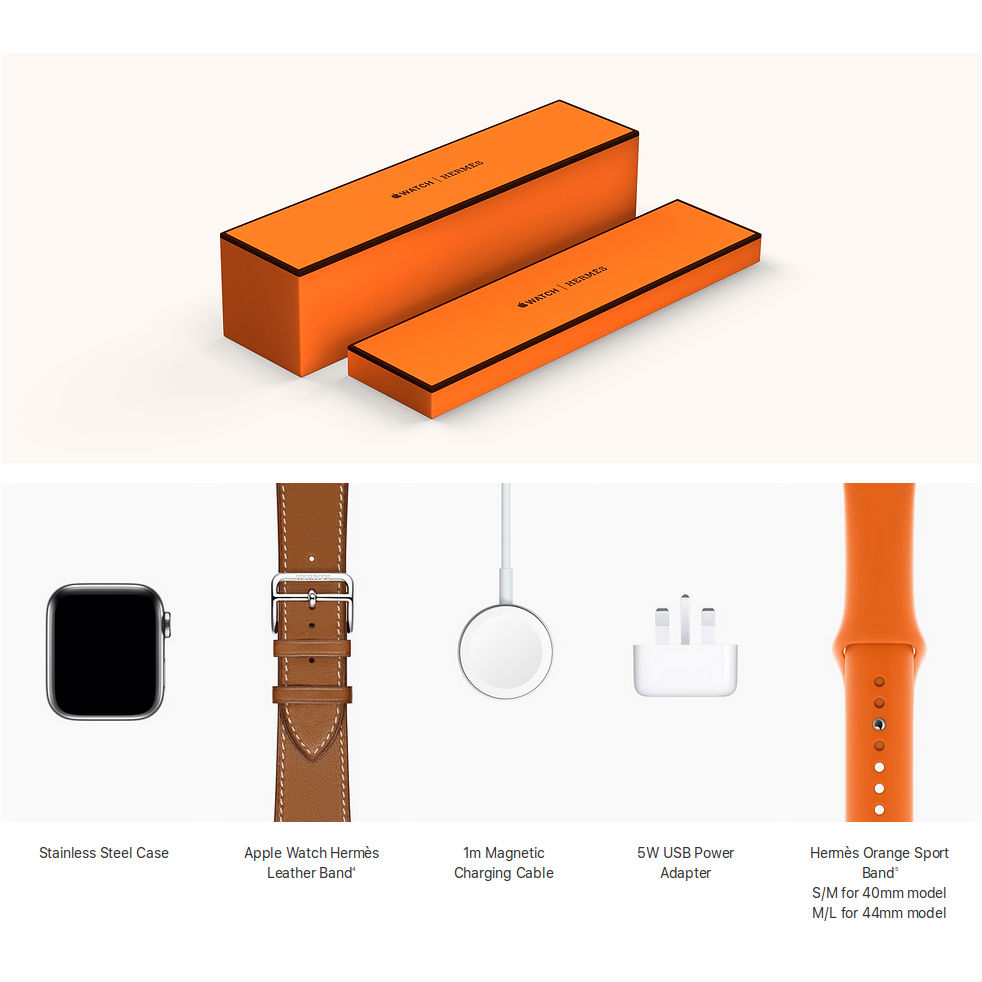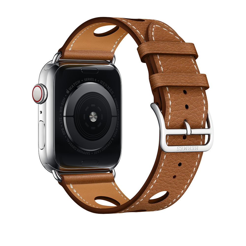 Apple Watch Hermès Series 4, 44mm Stainless Steel Case with Fauve Grained Barenia Leather Single Tour Rallye, GPS + Cellular - умен часовник от Apple