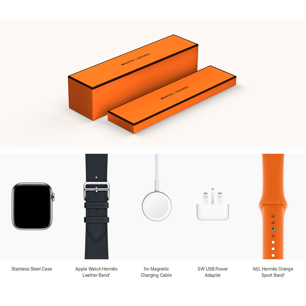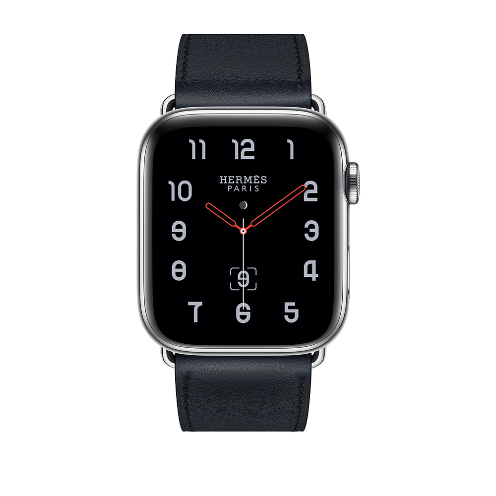 Apple Watch Hermès Series 4, 44mm Stainless Steel Case with Indigo Swift Leather Single Tour, GPS + Cellular - умен часовник от Apple