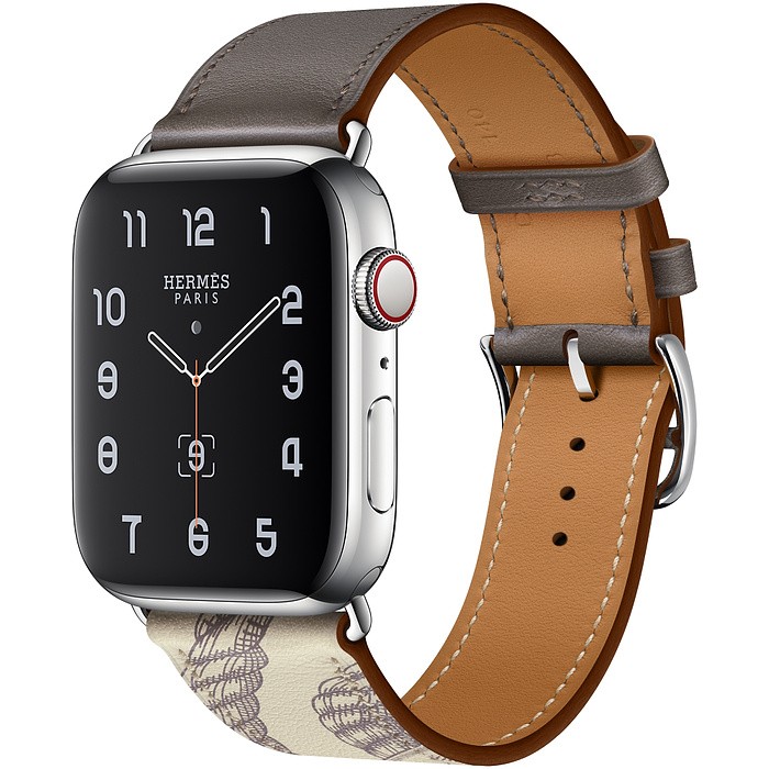 Apple Watch Hermès Series 5, 44mm Étain/Béton Stainless Steel Case with Single Tour, GPS + Cellular - умен часовник от Apple
