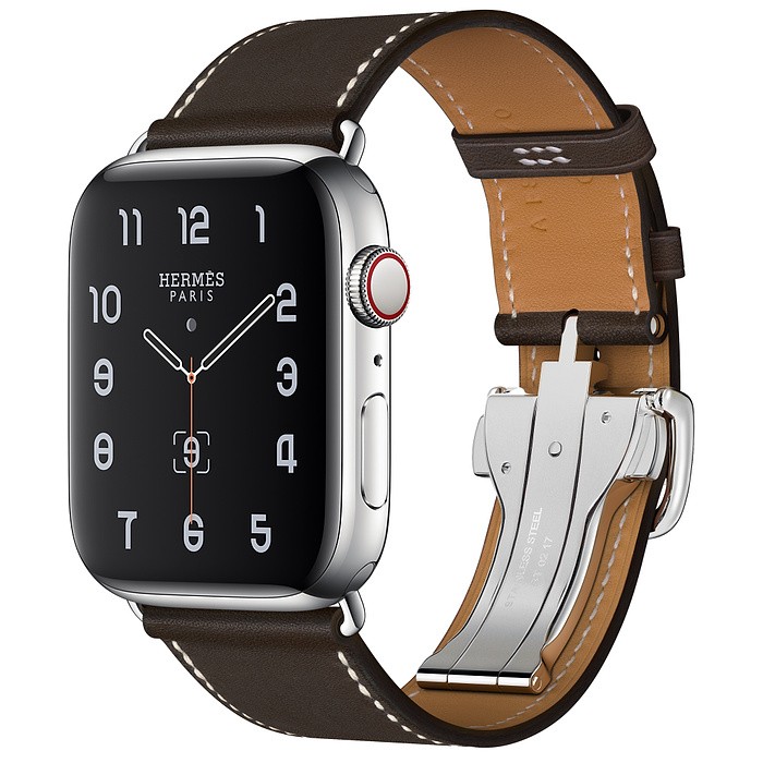 Apple Watch Hermes Series 5, 44mm Ebene Stainless Steel Case with Single Tour Deployment Buckle, GPS + Cellular - умен часовник от Apple