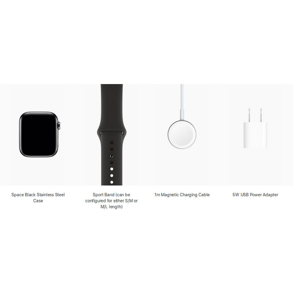 Apple Watch Series 4, 40mm Space Black Stainless Steel Case with Black Sport Band, GPS + Cellular - умен часовник от Apple