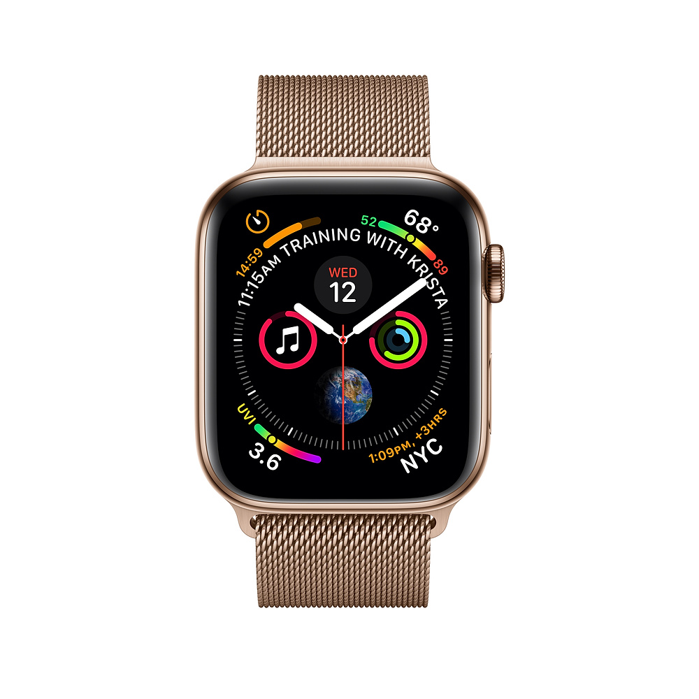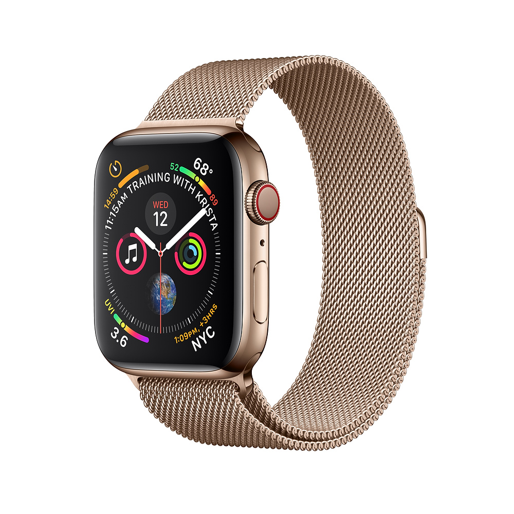 Apple Watch Series 4, 44mm Gold Stainless Steel Case with Milanese Loop, GPS + Cellular - умен часовник от Apple