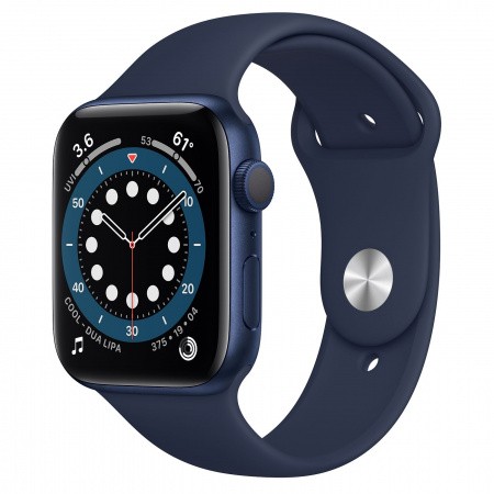 Apple Watch Series 6 GPS, 44mm Blue Aluminium Case with Deep Navy Sport Band - умен часовник от Apple