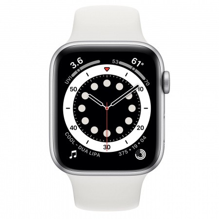 - Модел: Watch S6 44mm, Silver Aluminium Case with White Sport Band